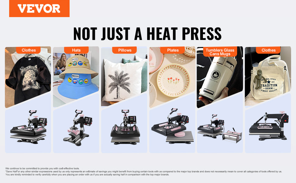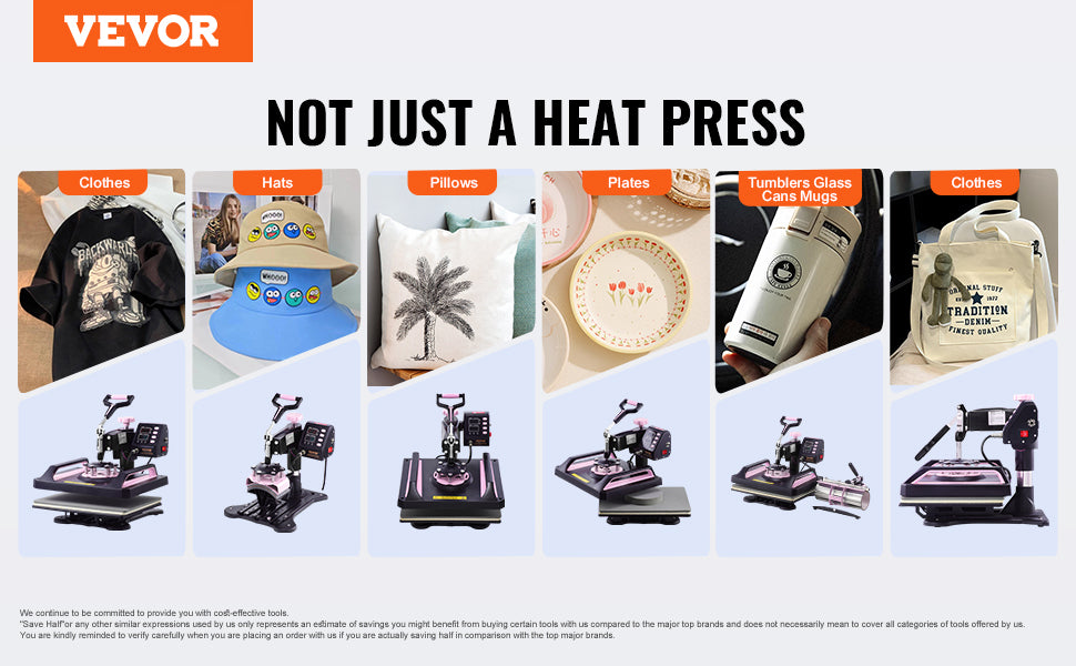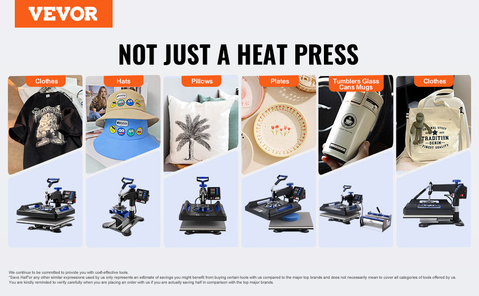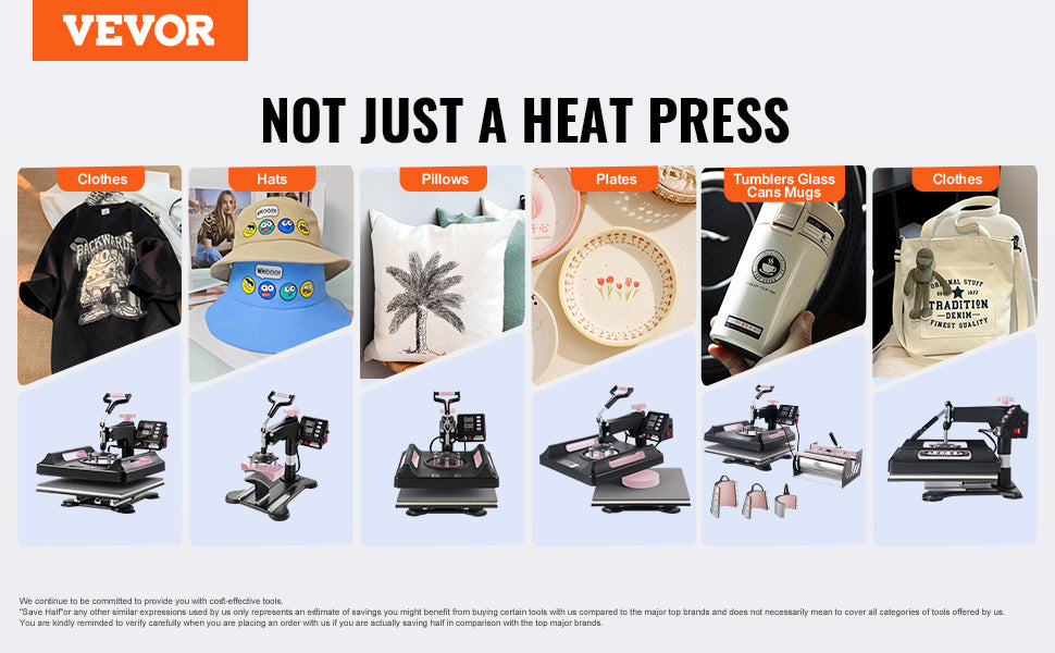Onze hittepers wordt geleverd met diverse opzetstukken, zodat je moeiteloos prachtige ontwerpen kunt overbrengen op T-shirts, kussenslopen, hoeden, mokken en keramische borden. Zo kun je je creativiteit de vrije loop laten. Of je nu gepersonaliseerde cadeaus maakt of unieke doe-het-zelfprojecten knutselt, met deze pers zit je altijd goed.