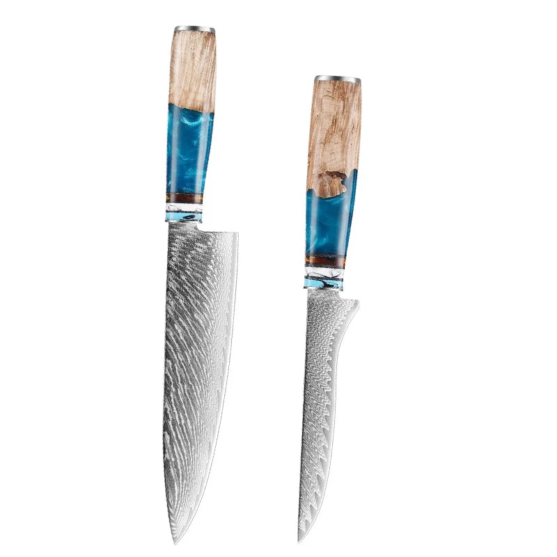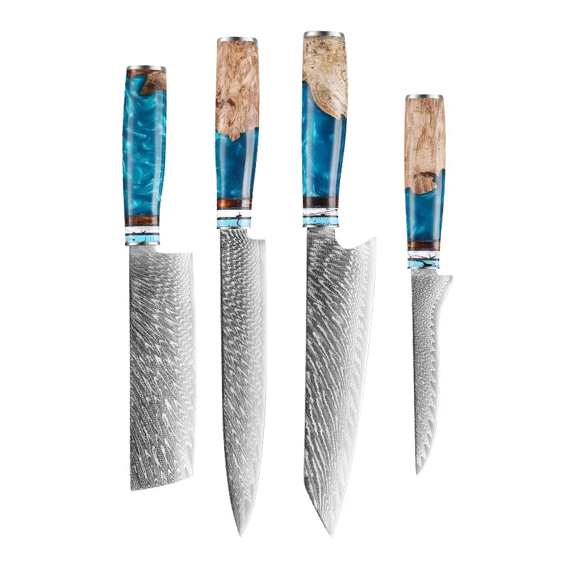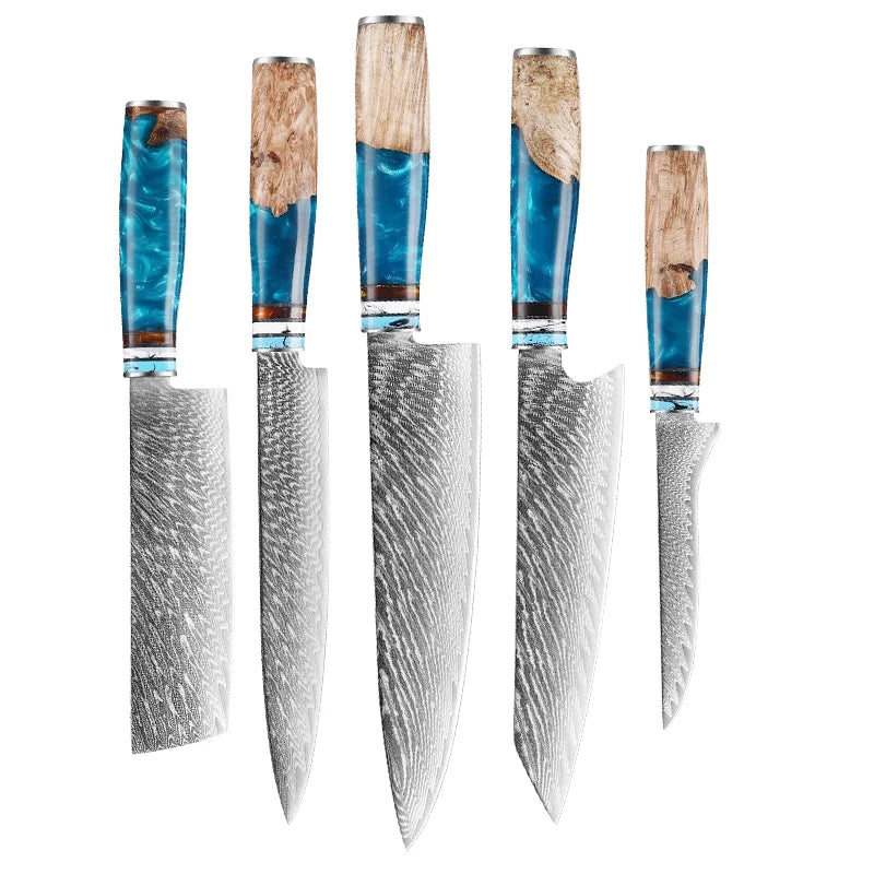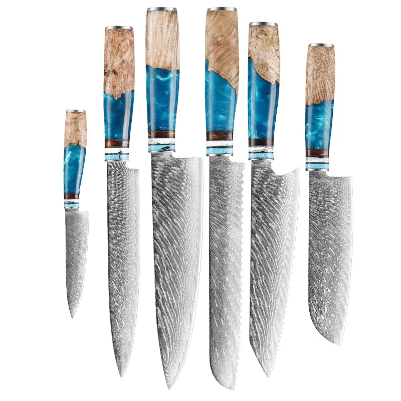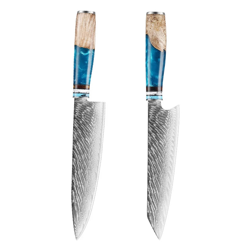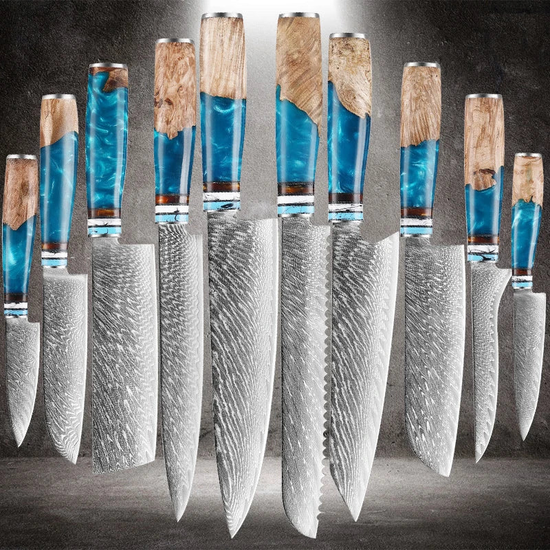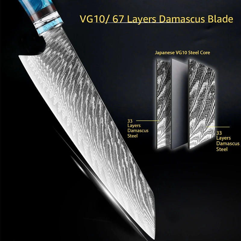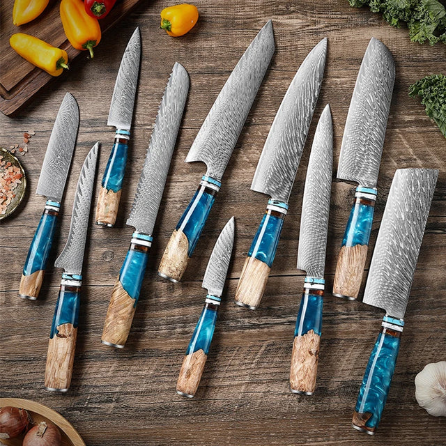 1-10pcs Kitchen Knife Set Damascus Steel Japanese Knives VG10 Steel Chef Knife Meat Cleaver Bread Knife B...