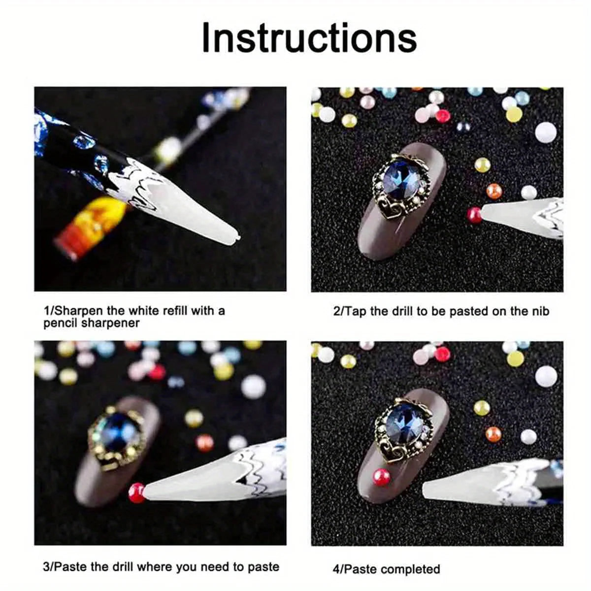 1 2 3 5pcs Nail Art Dotting Pencil Rhinestone Picker Contactless Pick Up Tool...