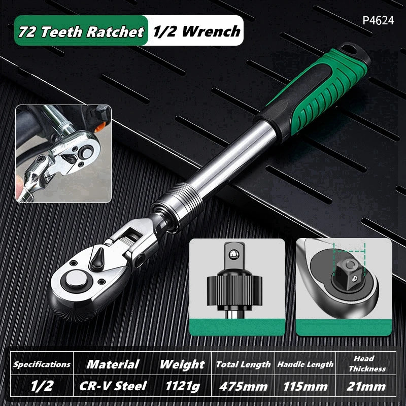 1/4,3/8,1/2 Inch Drive Socket Adjustable Ratchet Wrench Extendable Handle Wrench 72-Tooth Quick-Release R...