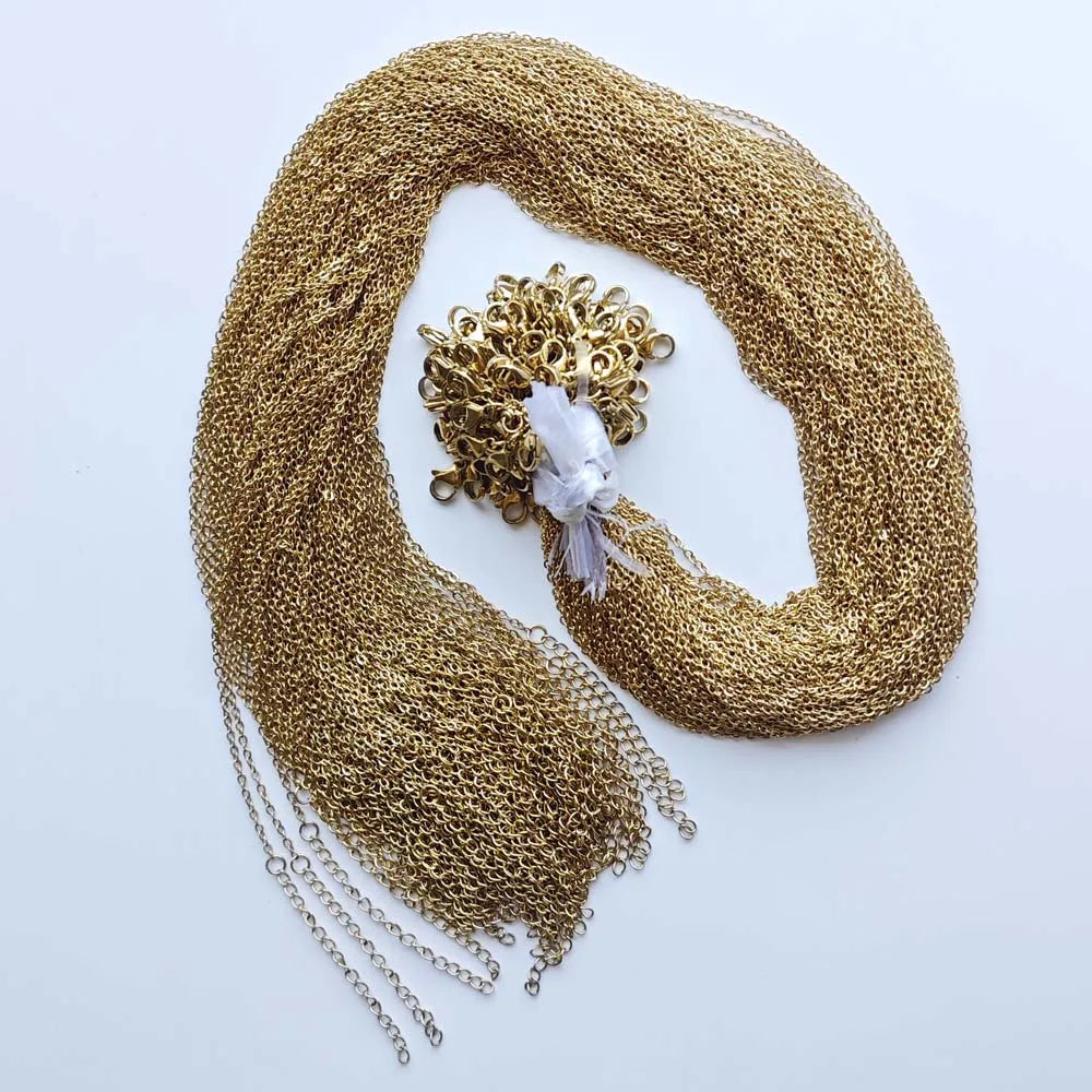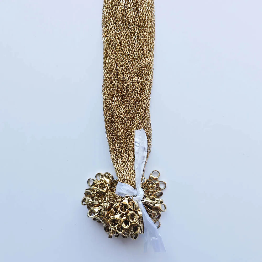 1.5mm 2mm stainless steel Plated gold Chain Necklaces Lobster Clasp DIY Jewelry accessory making 45cm 50c...