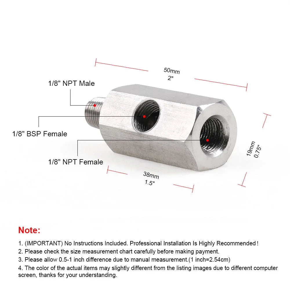 1/8'' BSPT Oil Pressure Sensor Tee to NPT Adapter Turbo Supply Feed Line Gauge BX101748