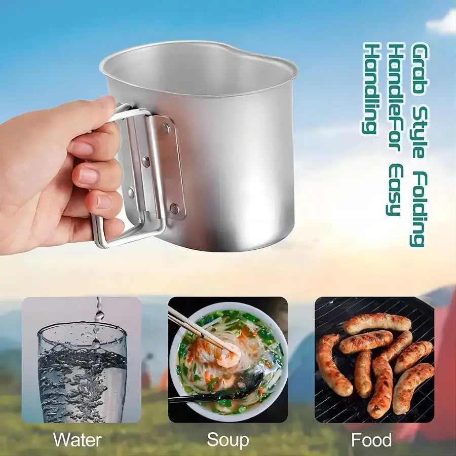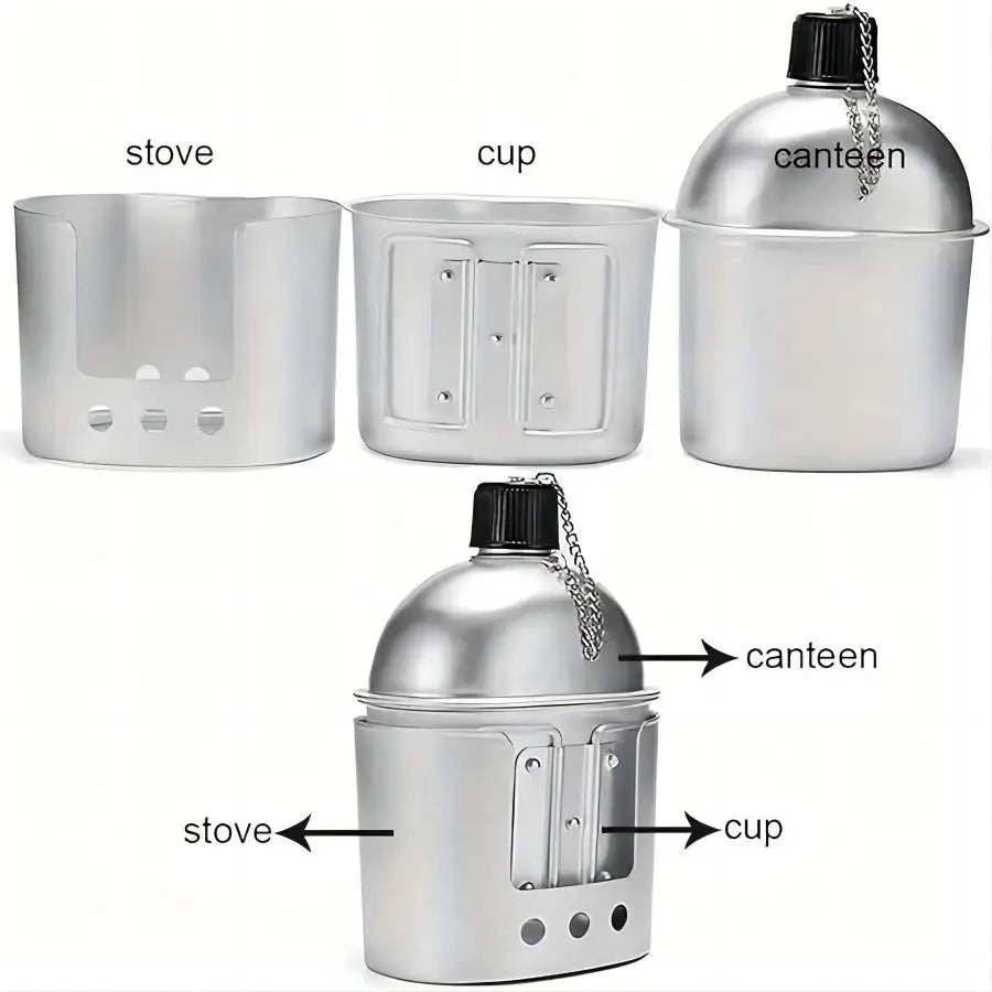 1 Set, Aluminum Water Canteen Cup And Storage Pouch, Portable Water Bottle For Outdoor Sport Camping Hiki...