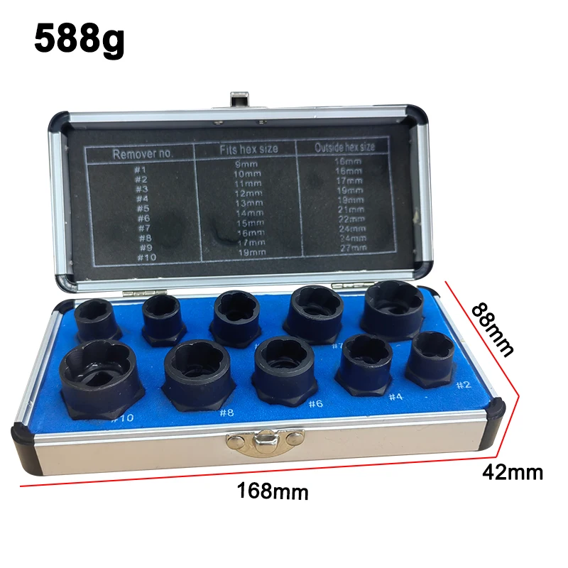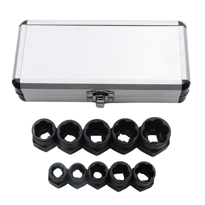 10 Piece Aluminum Box Broken Wire Nut Bolt Extractor Hexagonal Nut Disassembly Tool Anti Slip Sleeve Set