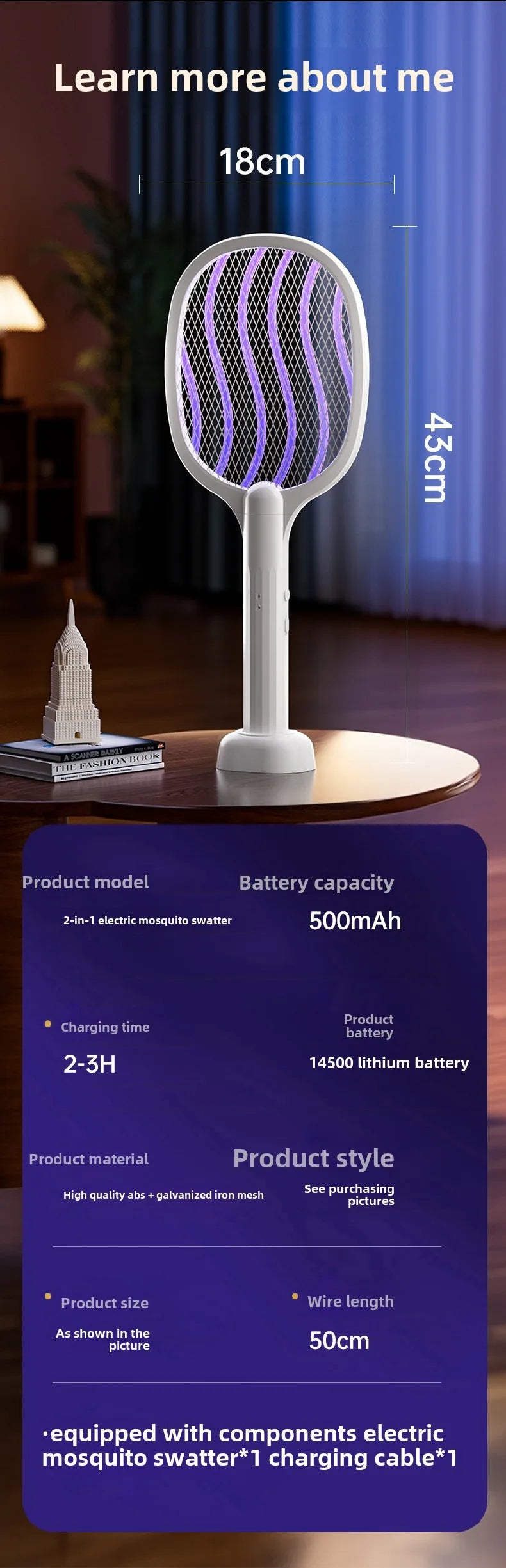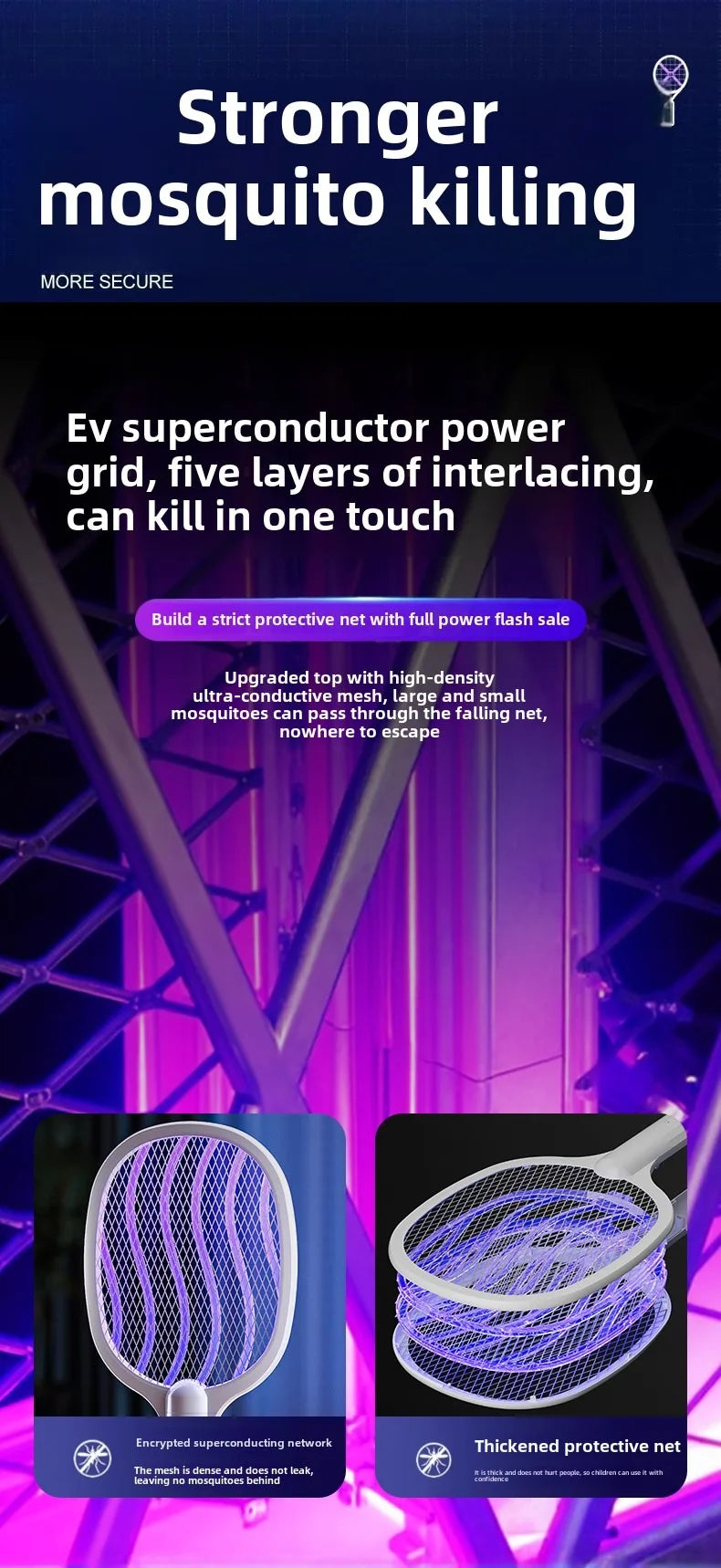 10000M Long-handled Electric Mosquito Killer Household Use Camping Silent Portable Mosquito Killer for Ni...