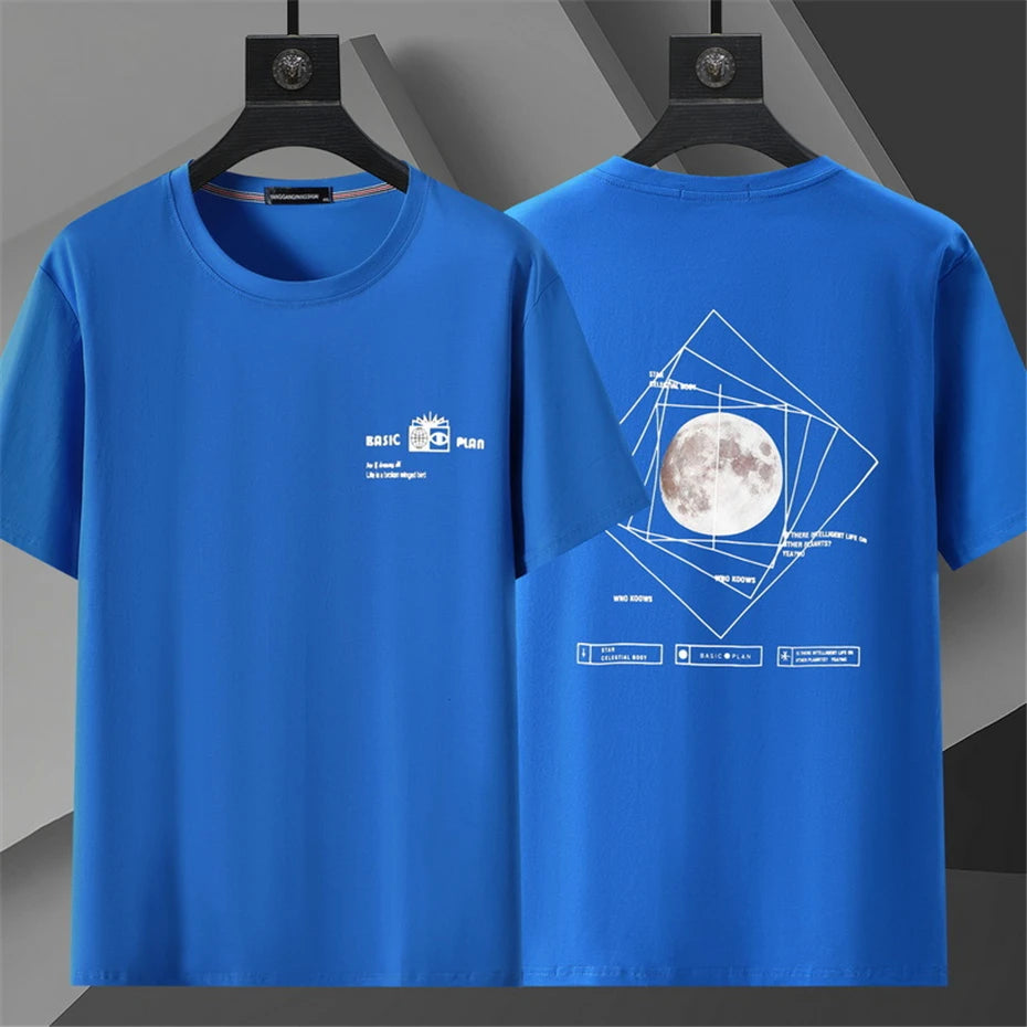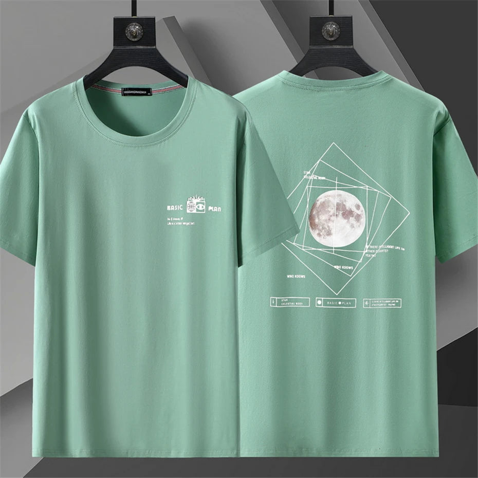 10xl 12 XL Plus Size T Shirt Men Summer Short Sleeve T shirt Moon Print Tops