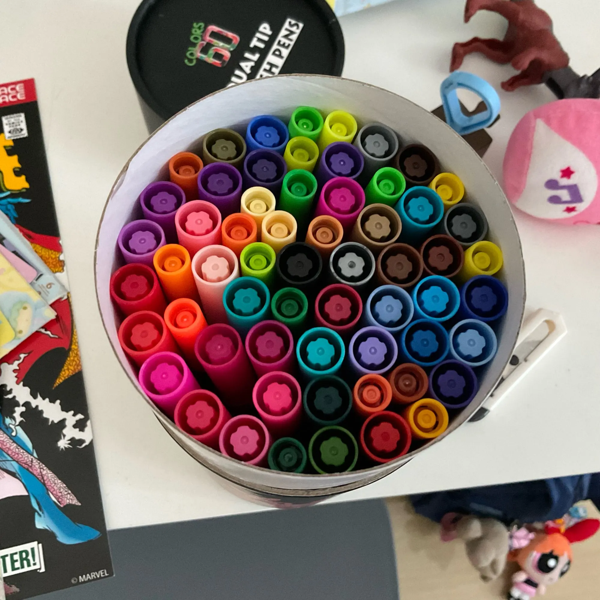 FLEXIBLE DUAL TIPS: These dual tipped marker pens are a must-have for your next masterpiece. Use the brush tip for coloring, shading, and blending, and the fine tip for smaller details. You can do it all with one marker!