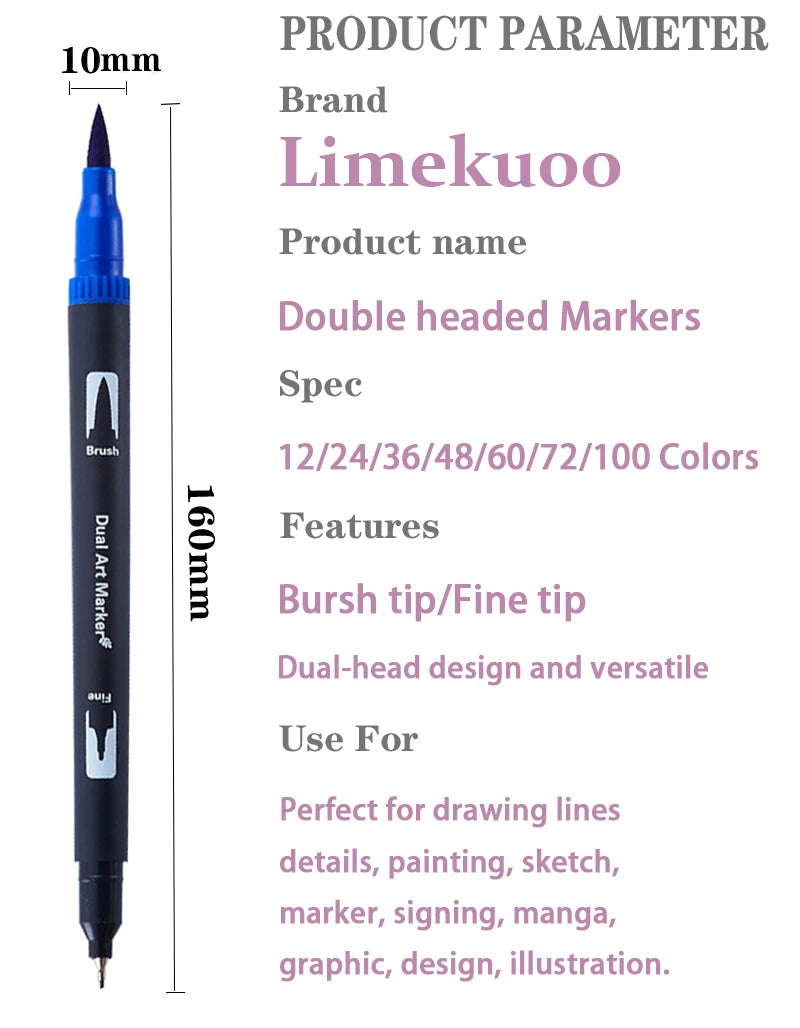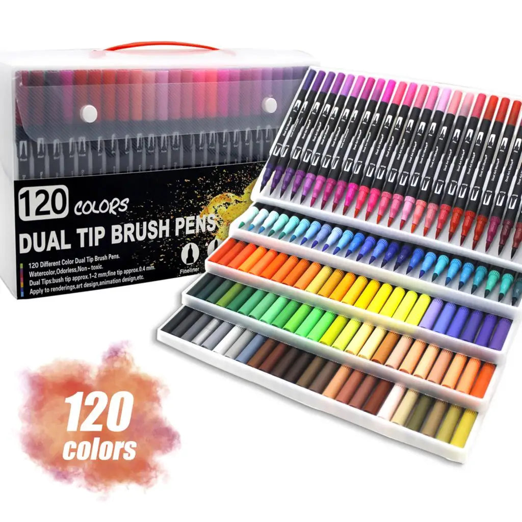 12/36/48/60/72/100/120 Colors FineLiner Drawing Painting Art Markers Pen Watercolor Dual Tip Brush Pen Calligraphy Sketching School Supplies