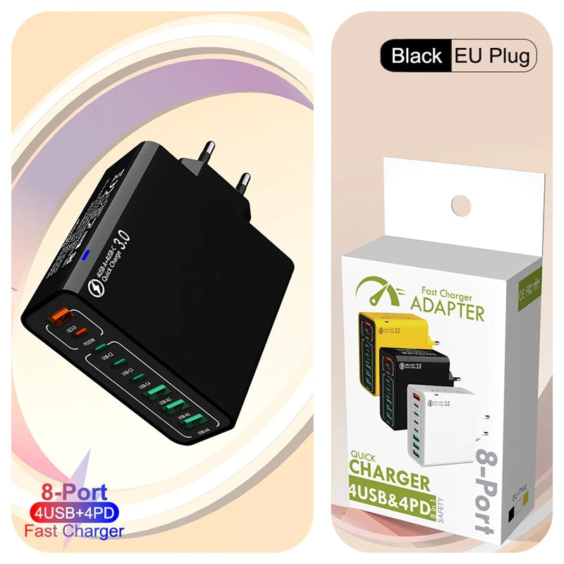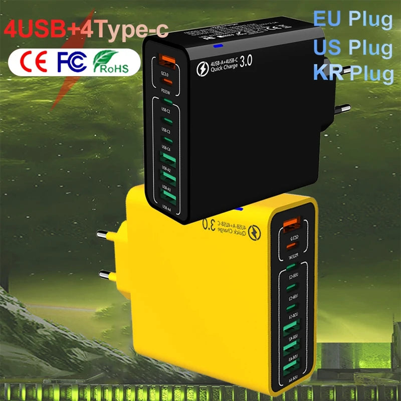 120w 8 Ports 4usb 4 Type c Multi interface Fast Charging Mobile Phone Charger