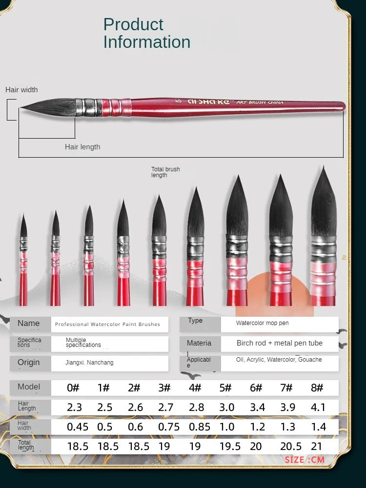 1Pc Professional Watercolor Paint Brushes,Mop Synthetic Squirrel Hair,Art Supplies for Painting,Great Wat...
