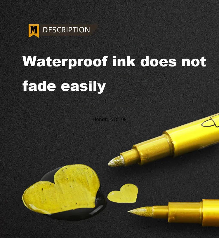 Features: The ink is shiny, long-lasting and does not fade, and can be written on smooth surfaces such as glass, ceramics, resin plastic, metal, paper, and so on.