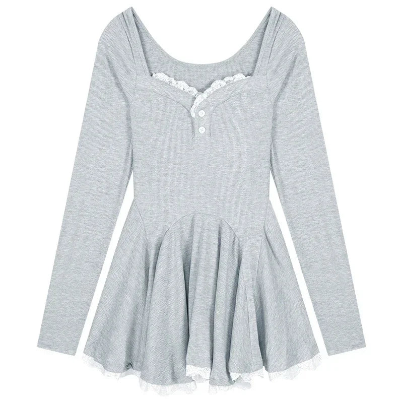 2024 New Sexy Korean Dress French Waist Closed Long Sleeve Clavicle Exposed Sweet