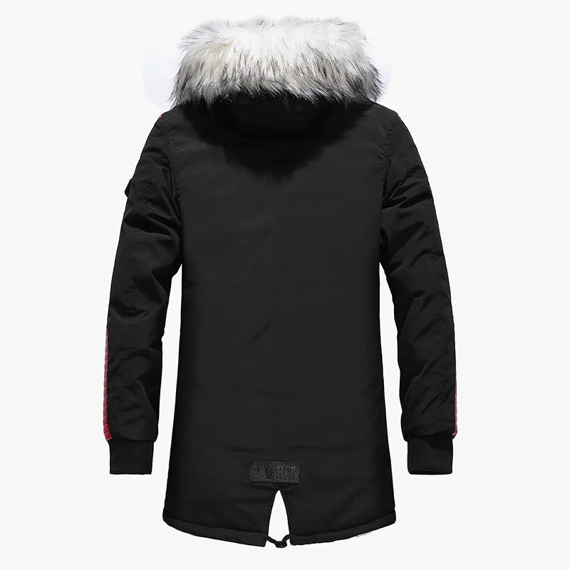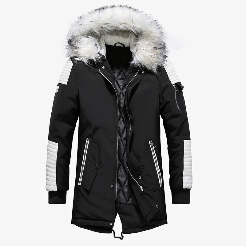 2024 Winter Jacket Men Fur Collar Hooded Oversized Black Long Parka Coats Pu Thicken Windproof Warm Jacke...