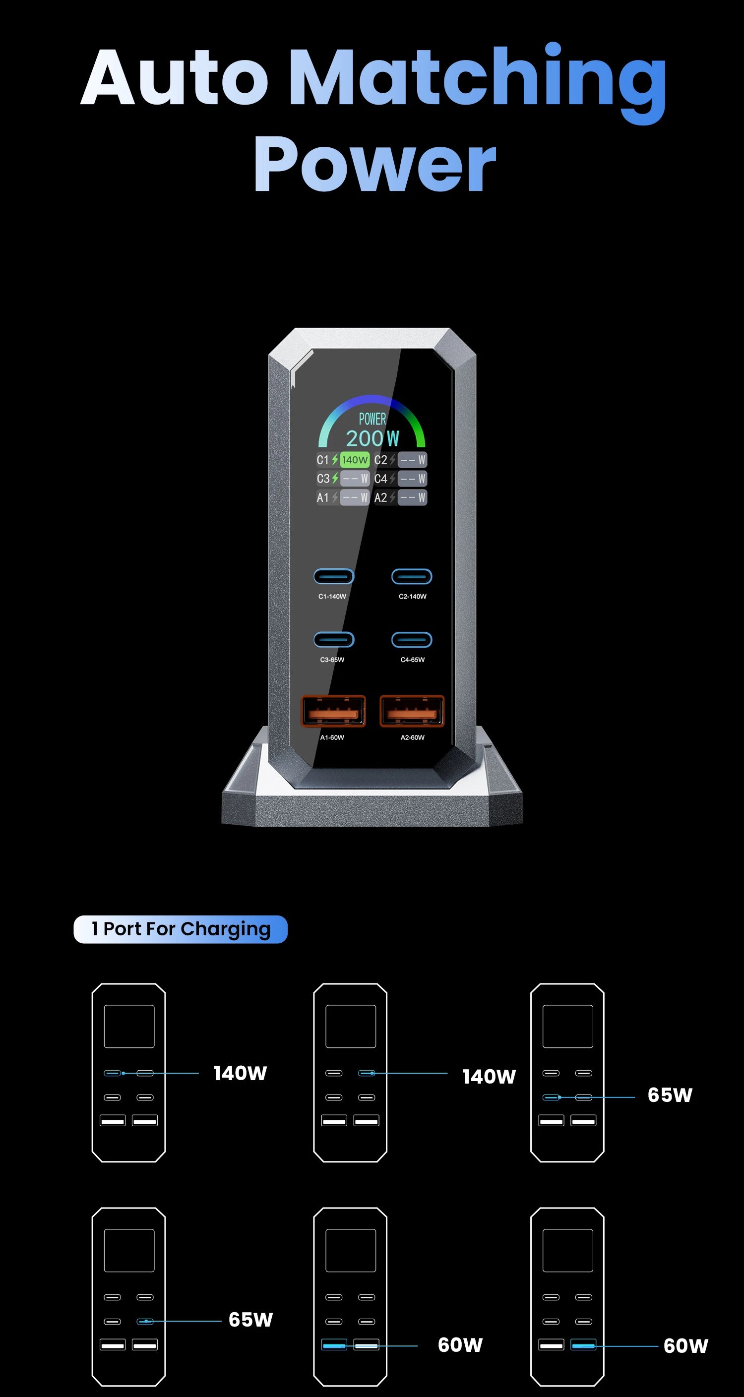 4 USB C | 2 USB A | 140W-PD3.1 I Ambient Lighting I Lighting Switch