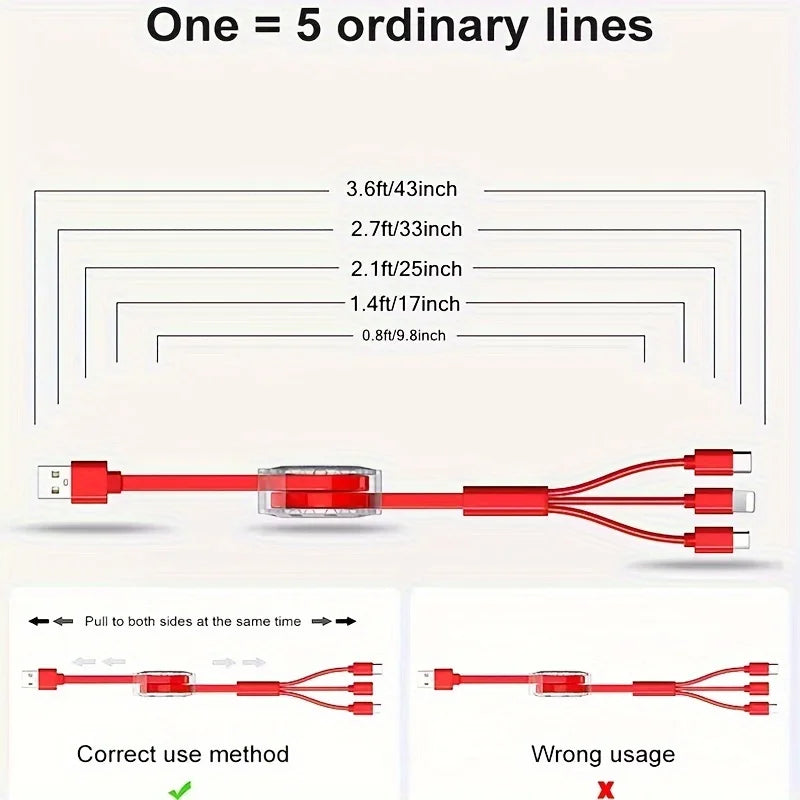 3 in 1 Retractable Data USB Cable for iPhone Charger Fast Wire Charging Cable For Android Phone Type C Xi...