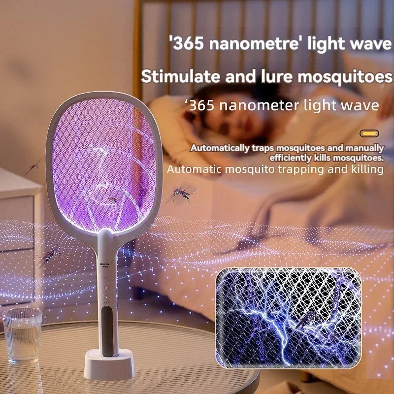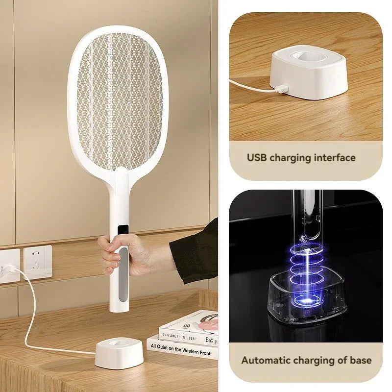 4000V Type-C Rechargeable Electric Fly Swatter Insect Killer Detachable Handheld Automatic Tapping Mode Indoor and Outdoor