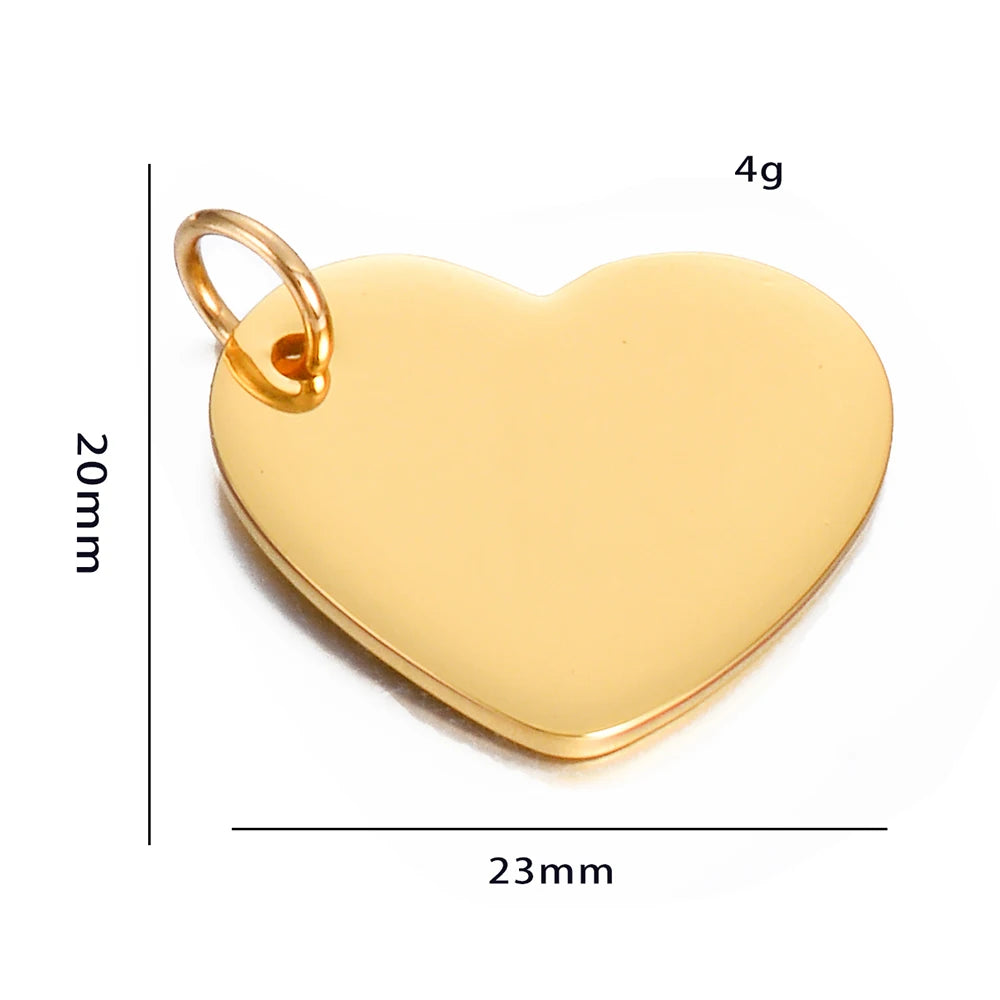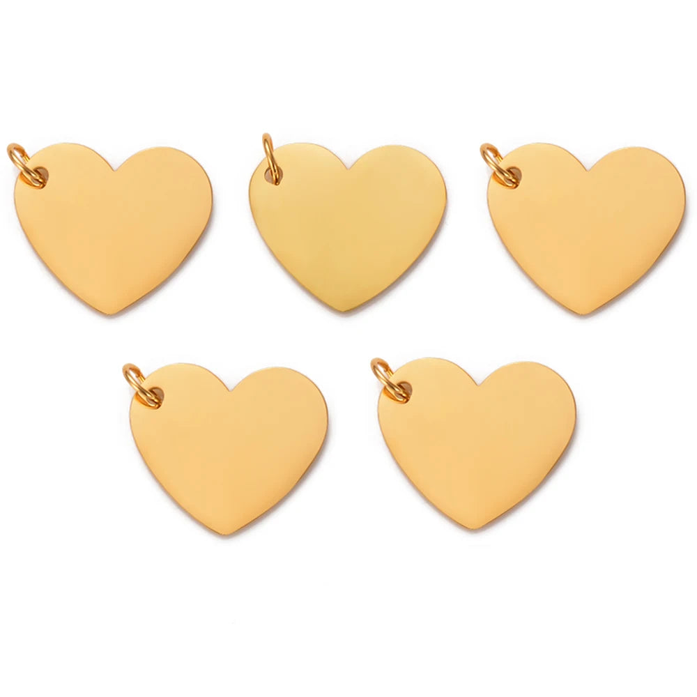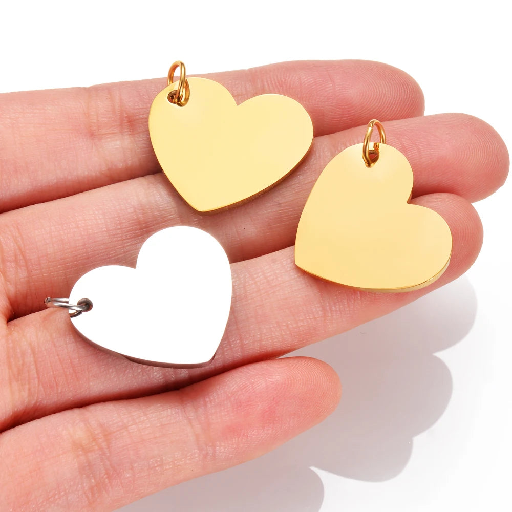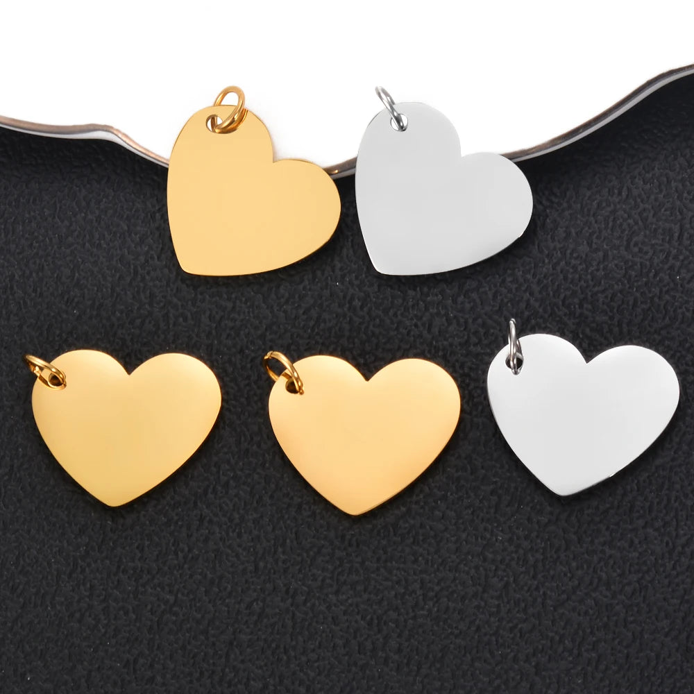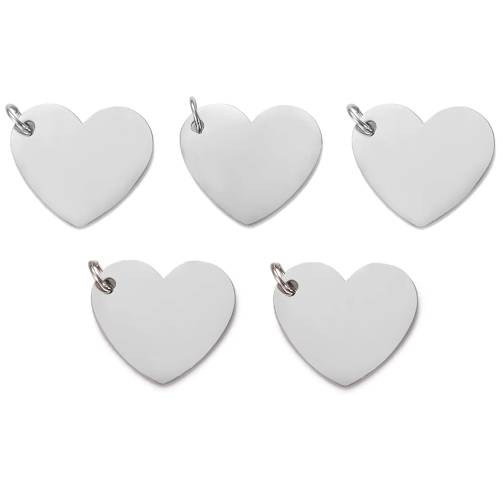 5Pcs Stainless Steel Mirror Polished Heart Tag Charm Pendant for Bracelet Necklace DIY Jewelry Making Charms