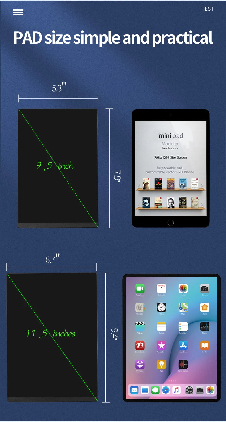 9.5 inch LCD Writing Tablet Full Screen Superfine Double Sided for Kids Drawing Pad Student Writing Pad G...