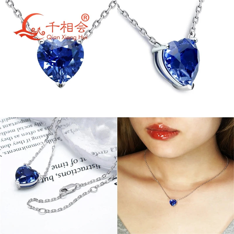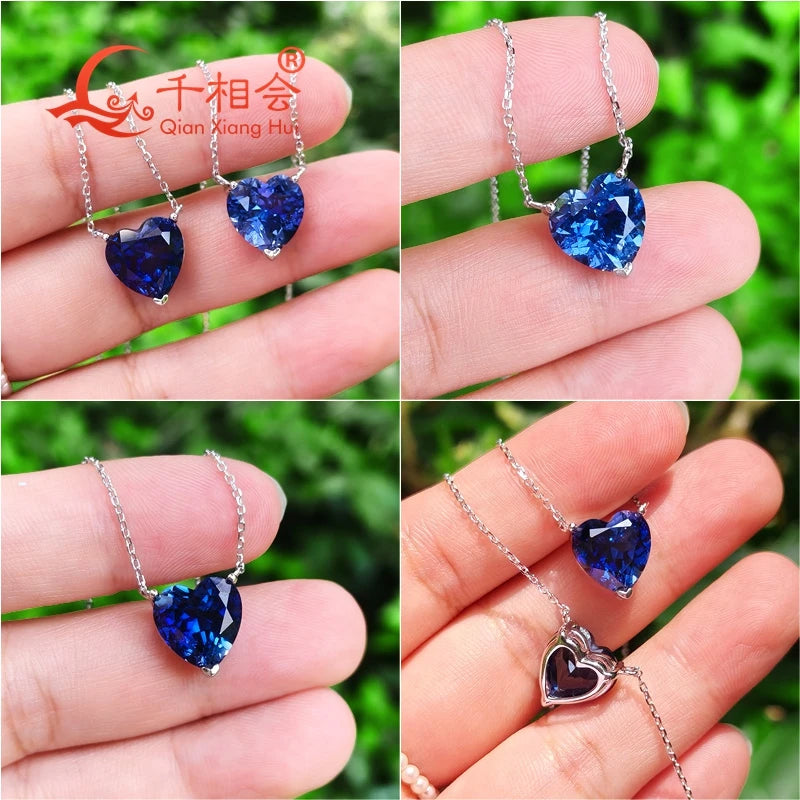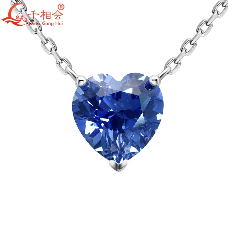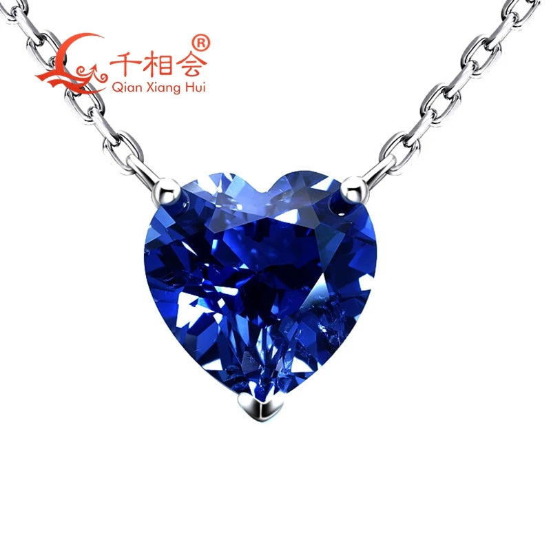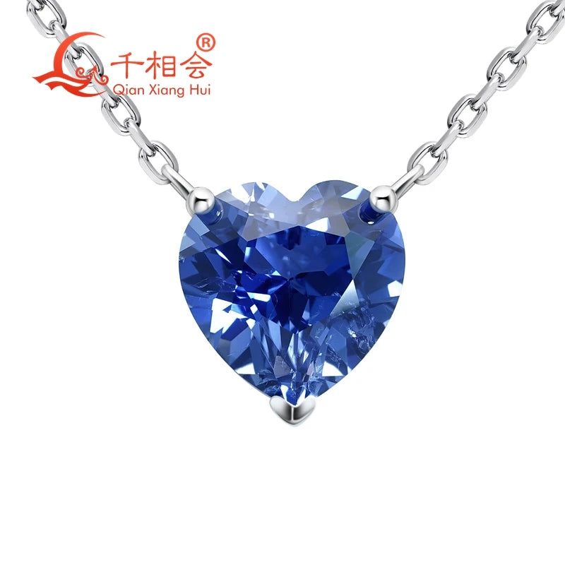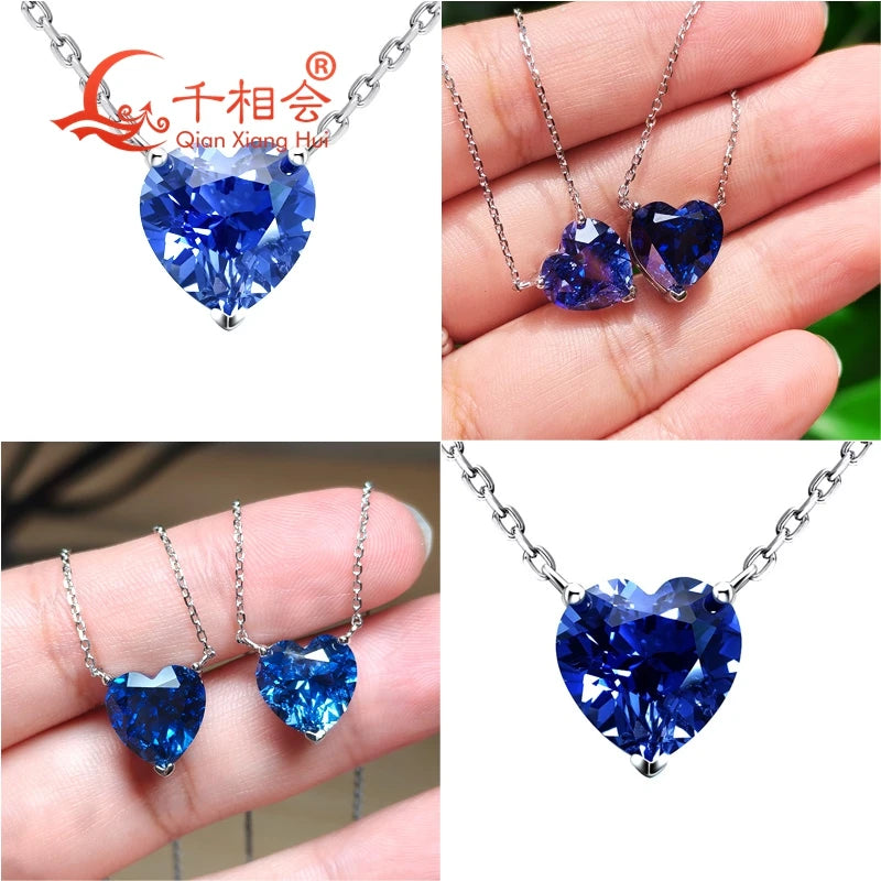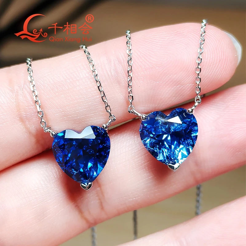925 silver heart shape 10 10mm Royal blue Cornflower Blue color lab grwon cre...