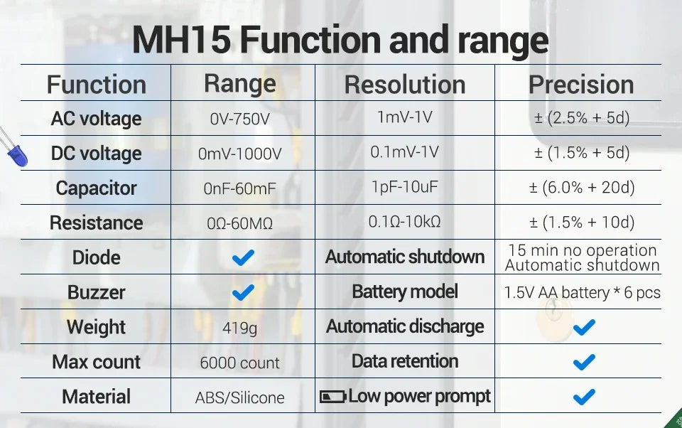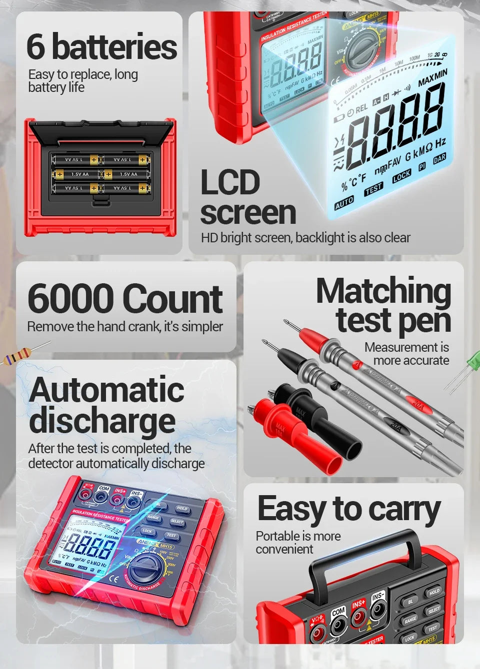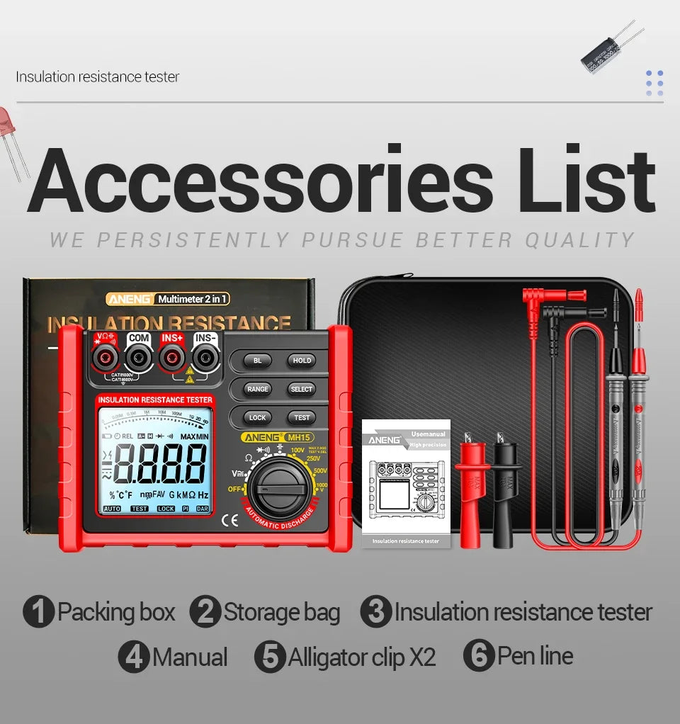 Aneng Mh15 Insulation Resistance Multifunctional Digital Meter Automatic