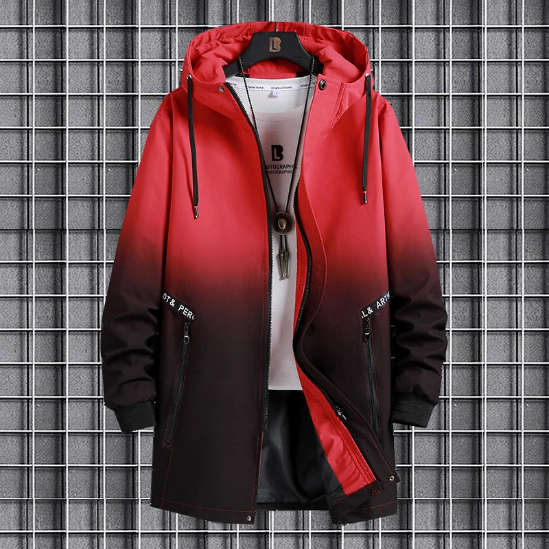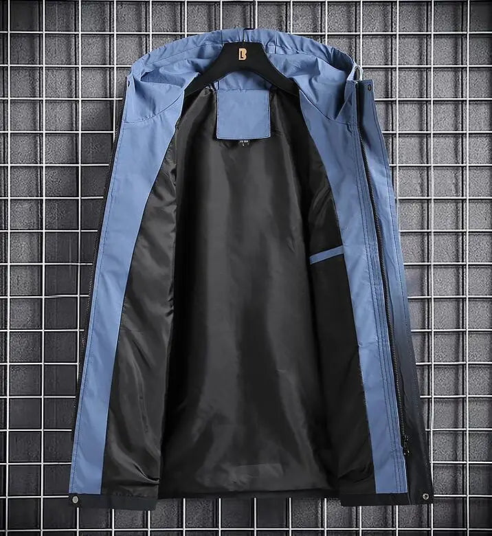 Autumn men s jacket windbreaker men s mid length plus size hooded spring