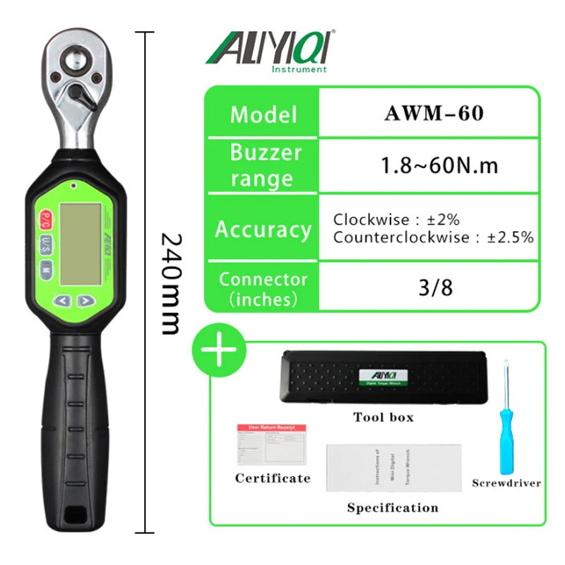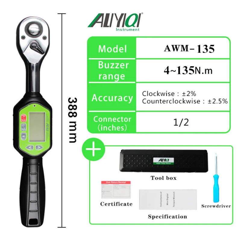 AWM 1 4, 3 8, 1 2 Portable Wrench Bidirectional Ratchet Head Mini Digital Torque