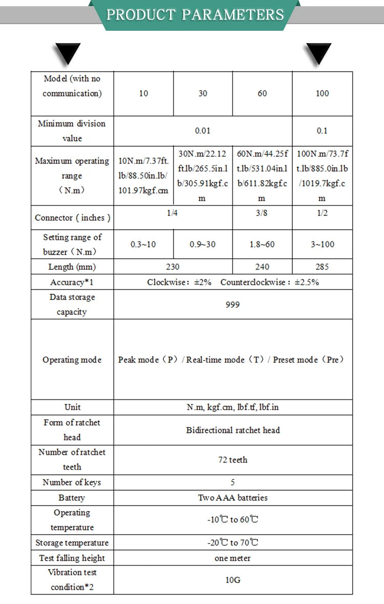 Torque wrench units: N.m, kgf.cm, lbf.tf, lbf.in