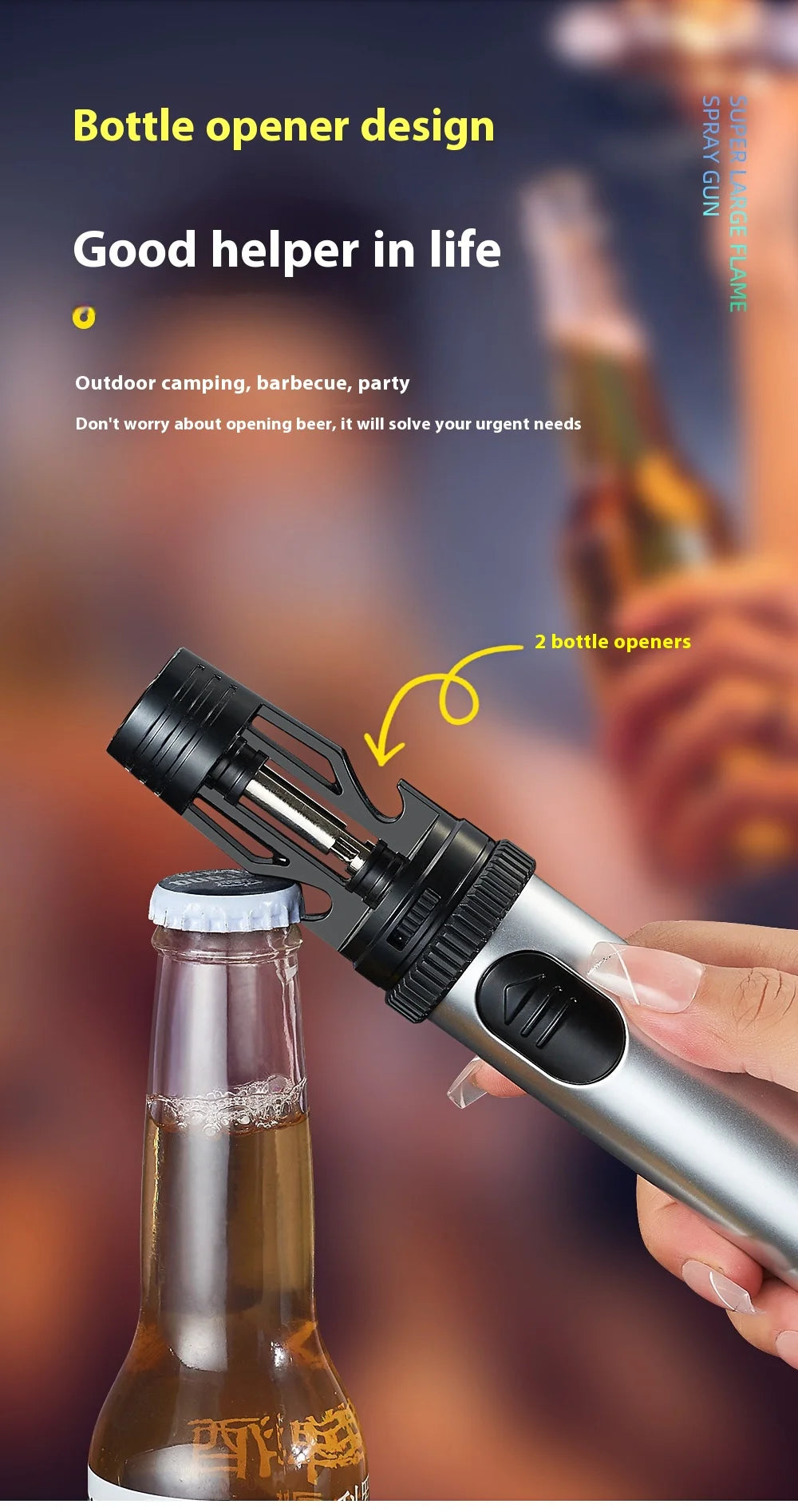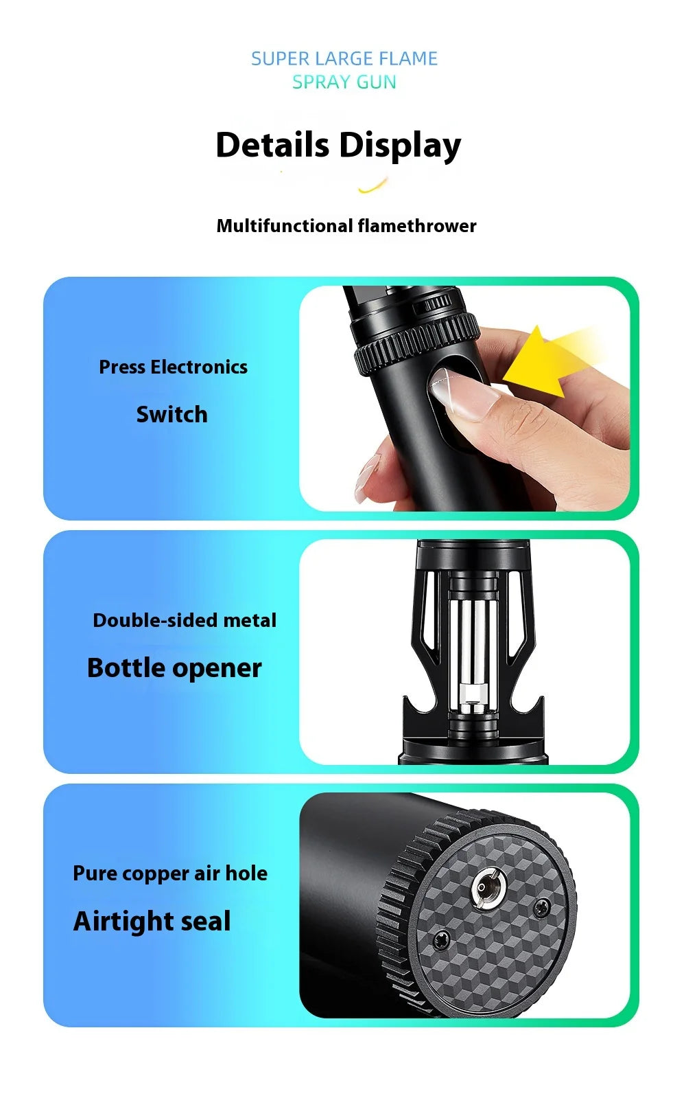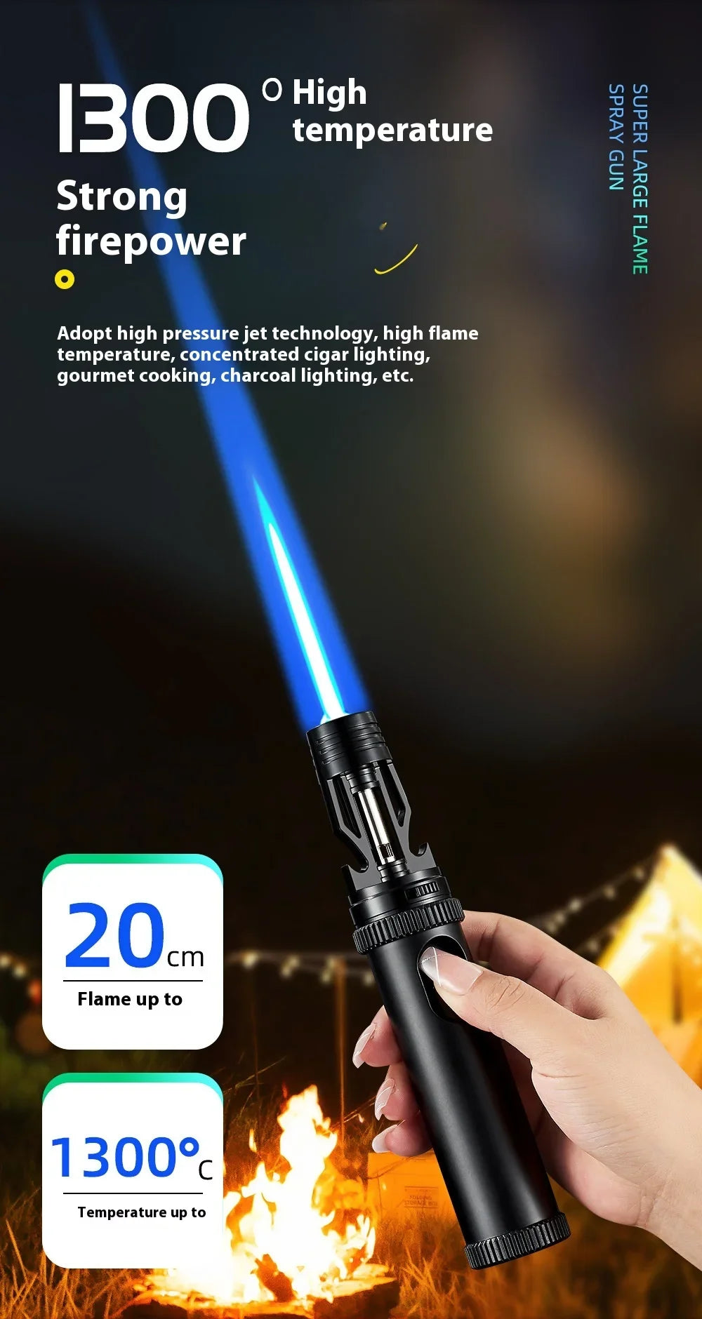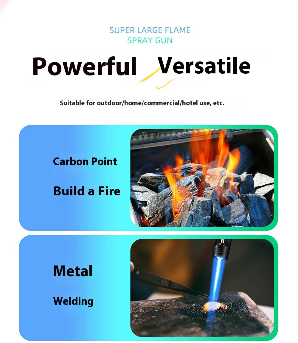 BBQ Barbecue Powerful Metal Gas Lighter Windproof Turbo Jet Red Blue Flame