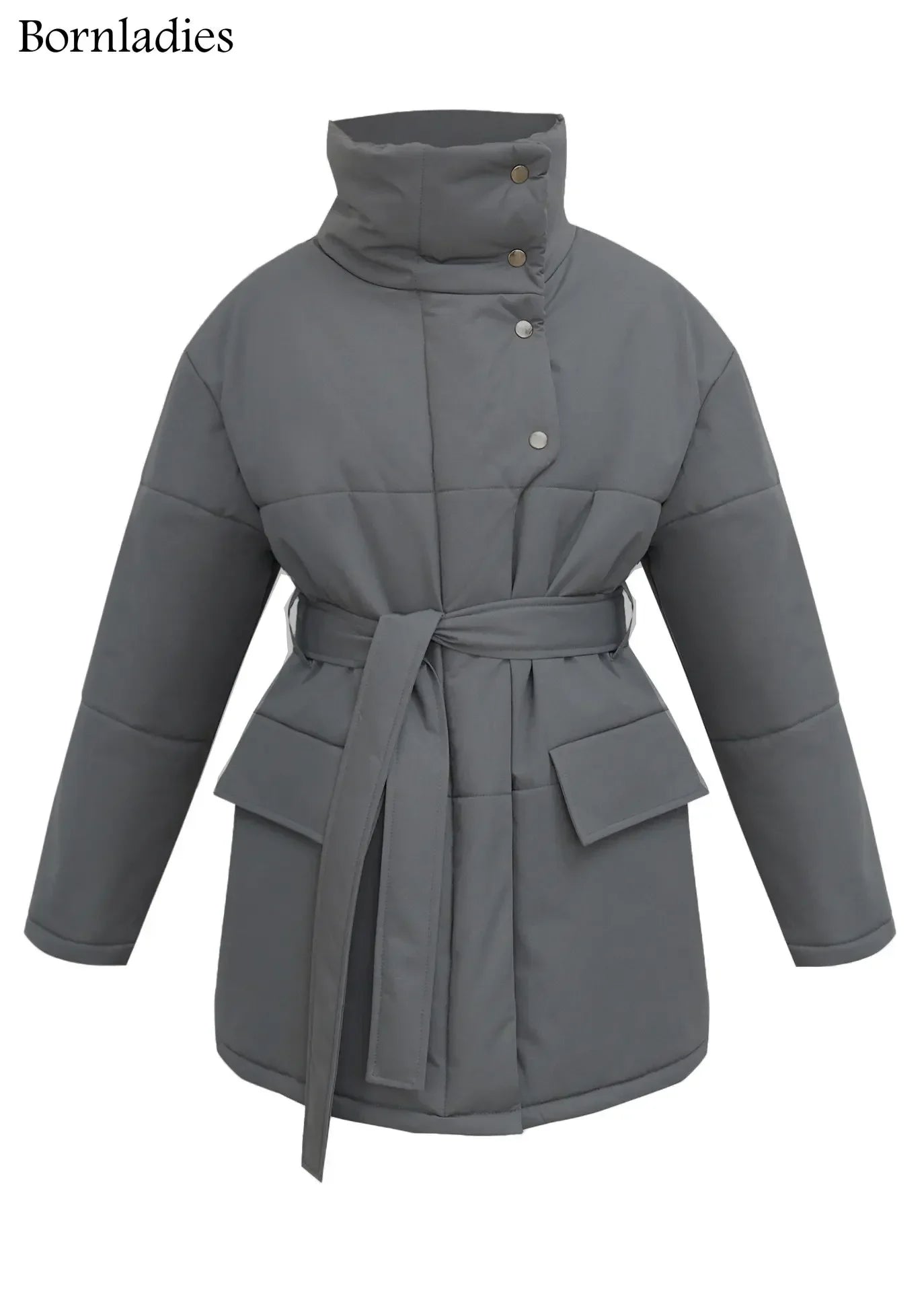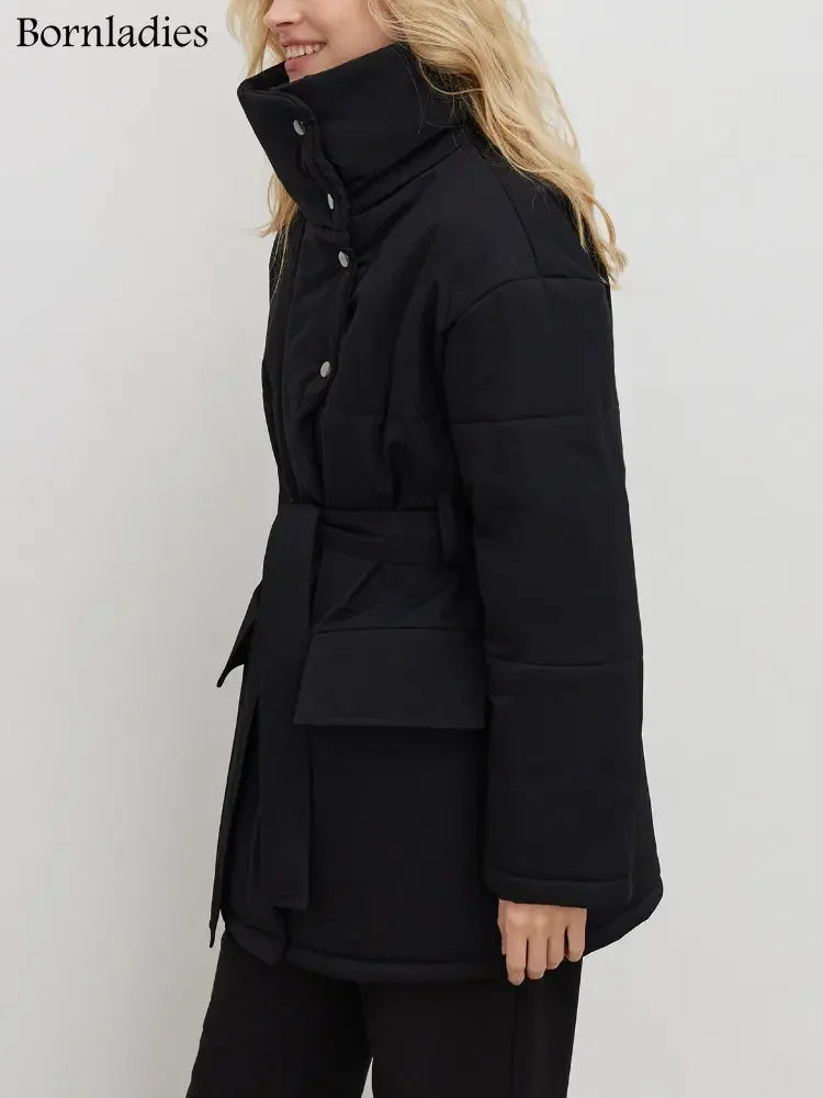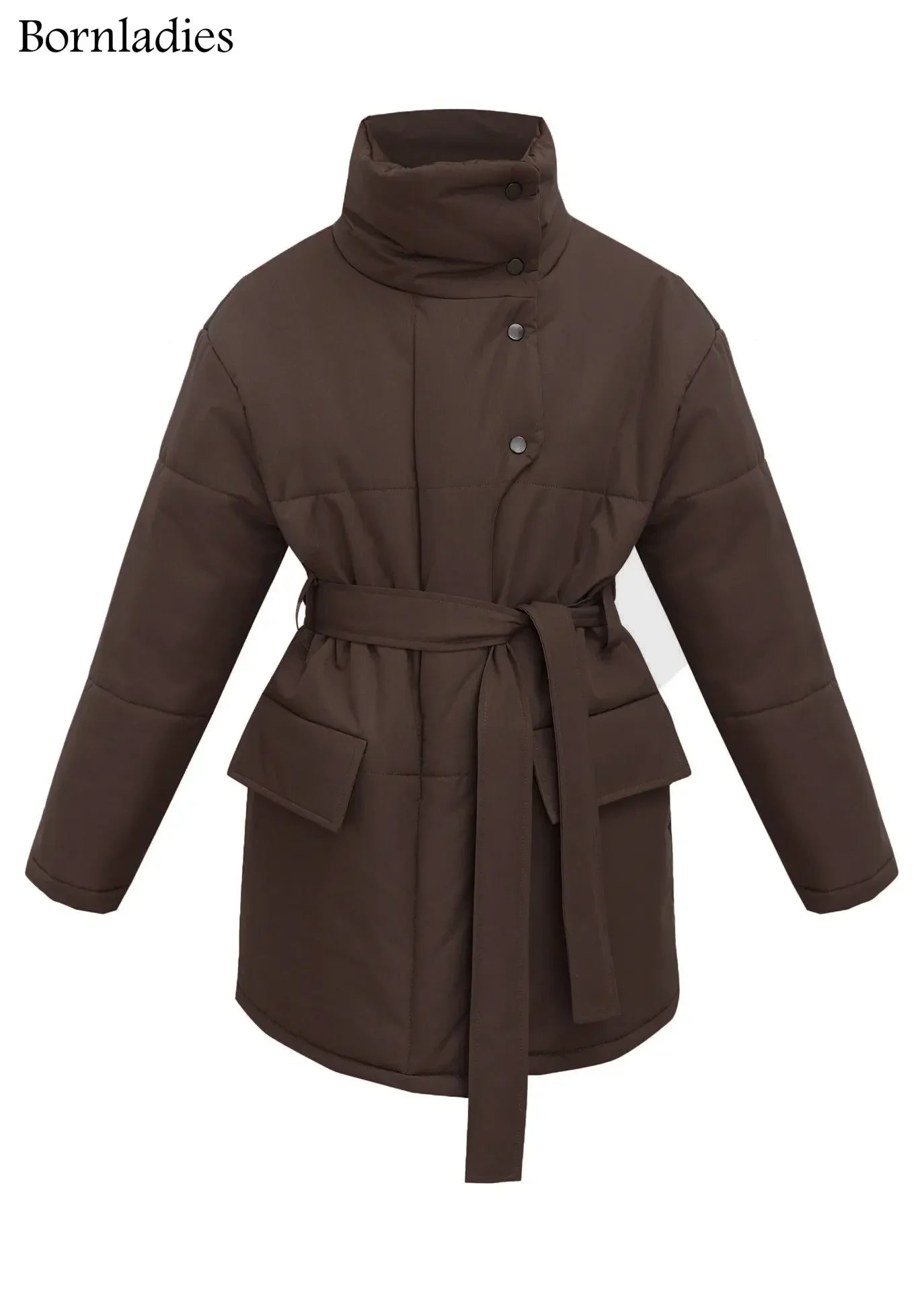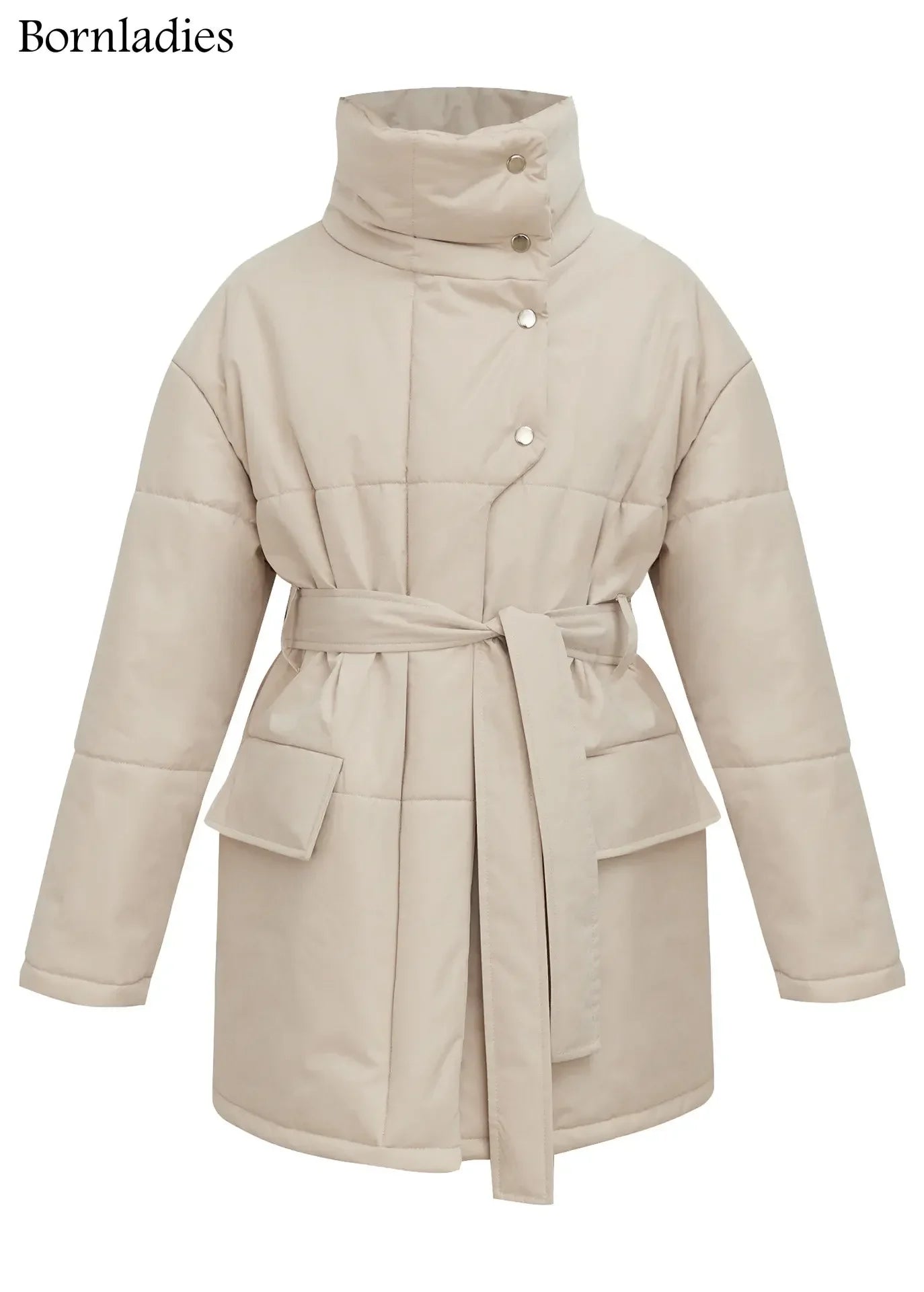 Bornladies Quilted Jacket Women Winter Loose Parkas Coat Vintage Belted