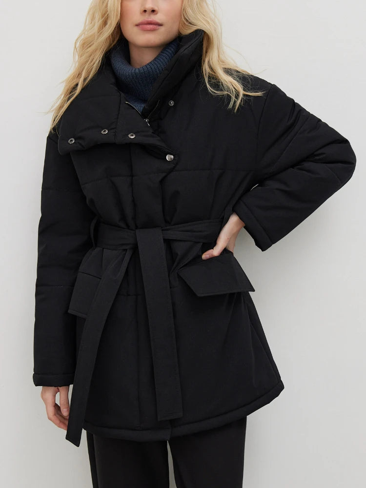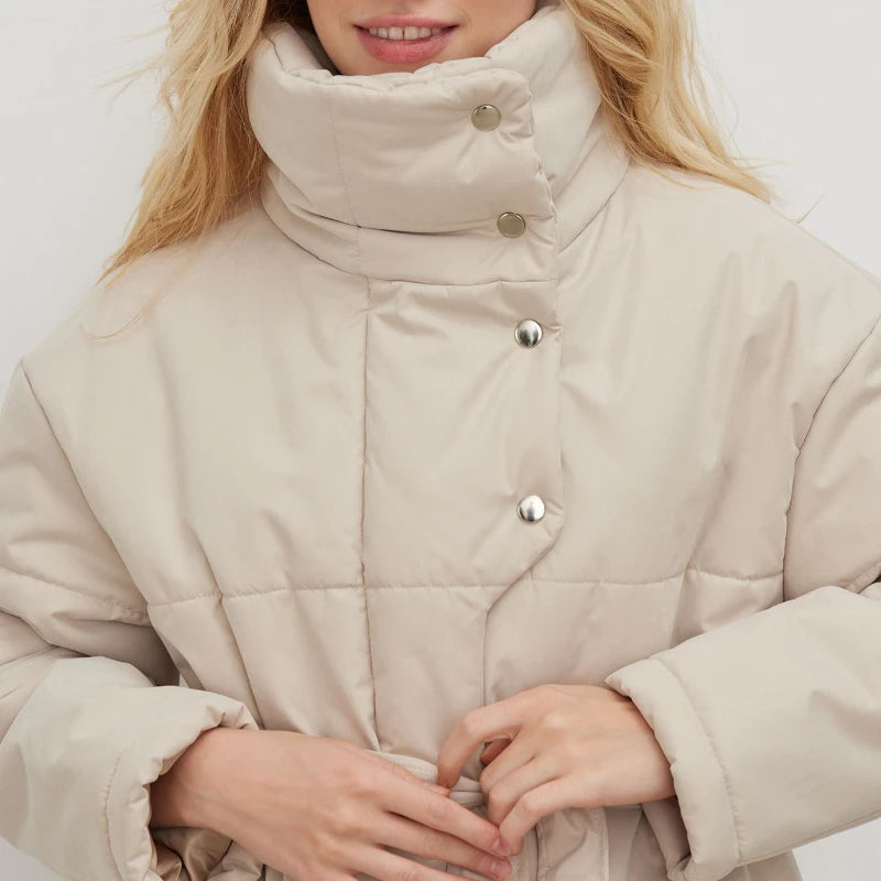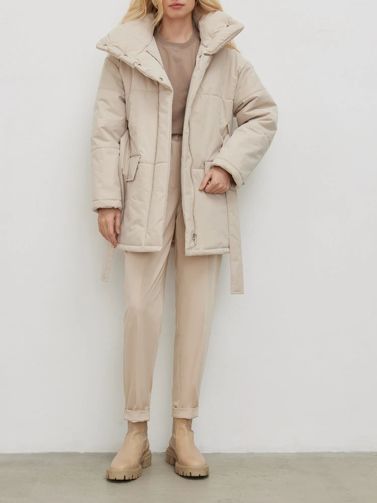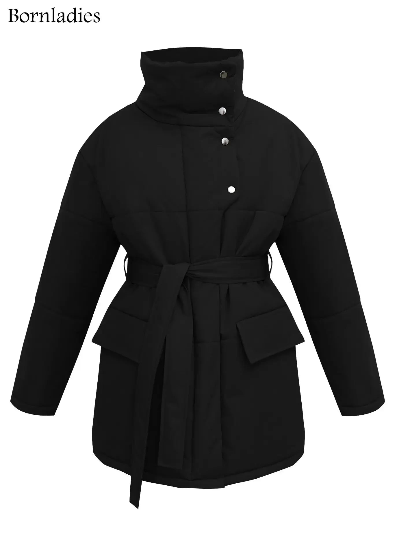 Bornladies Quilted Jacket Women Winter Loose Parkas Coat Vintage Belted