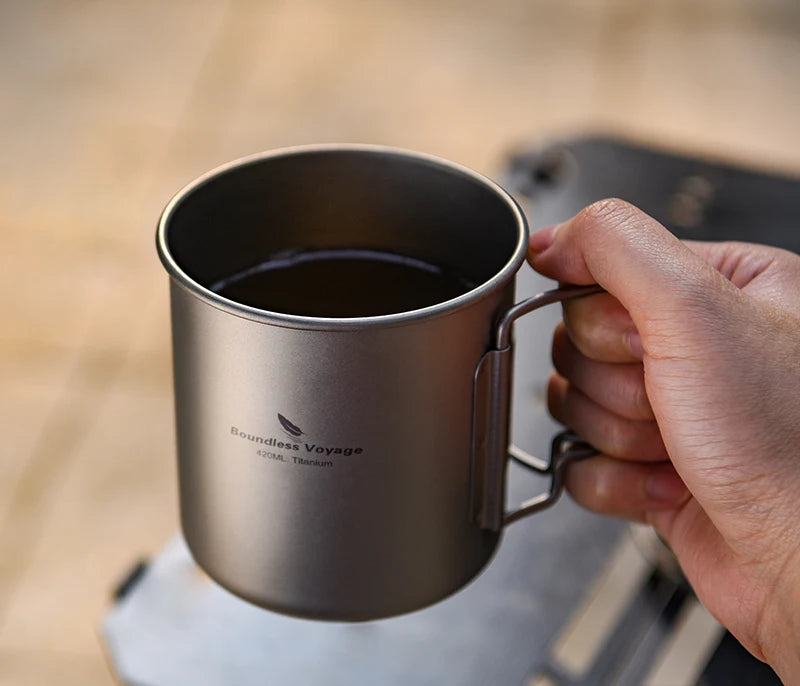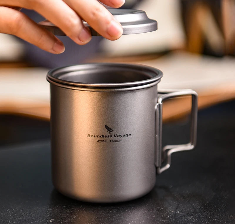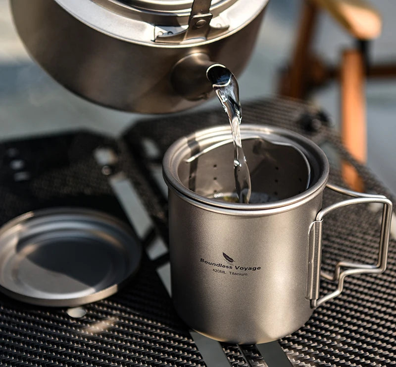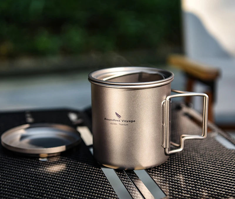 Boundless Voyage 420ml Titanium Mug with Strainer & Lid Lightweight Camping S...