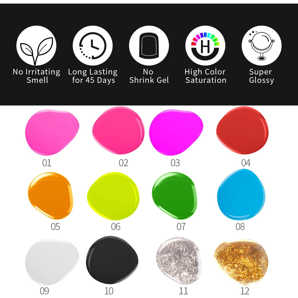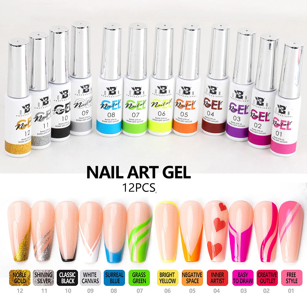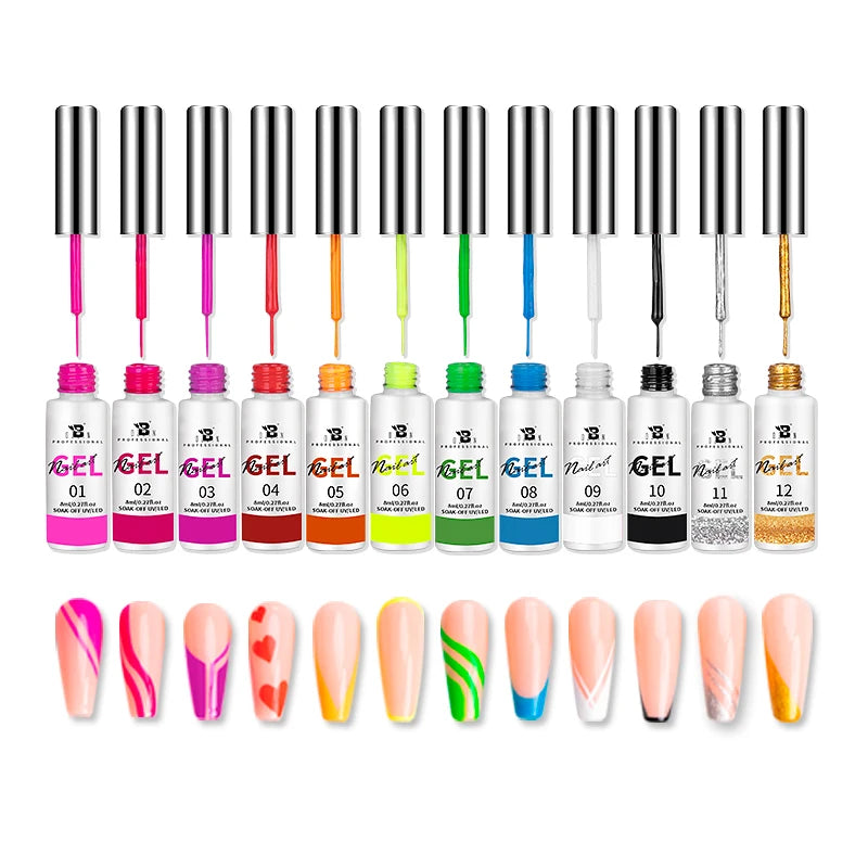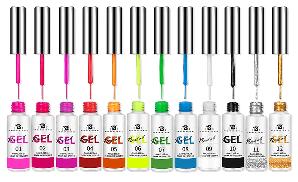 Bozlin 8ml Nail Art Gel Soak Off UV LED Gel Nail Polish 12 Colors Painting Ge...