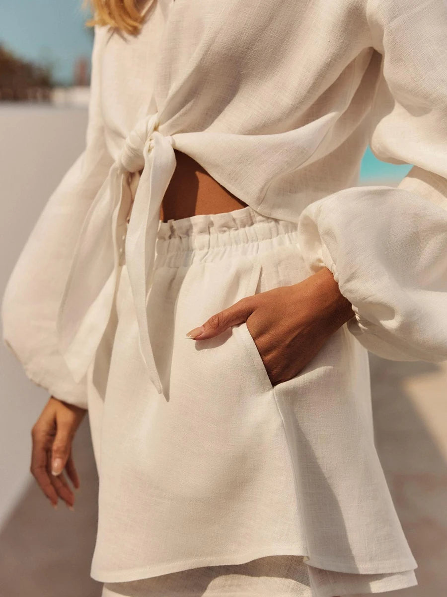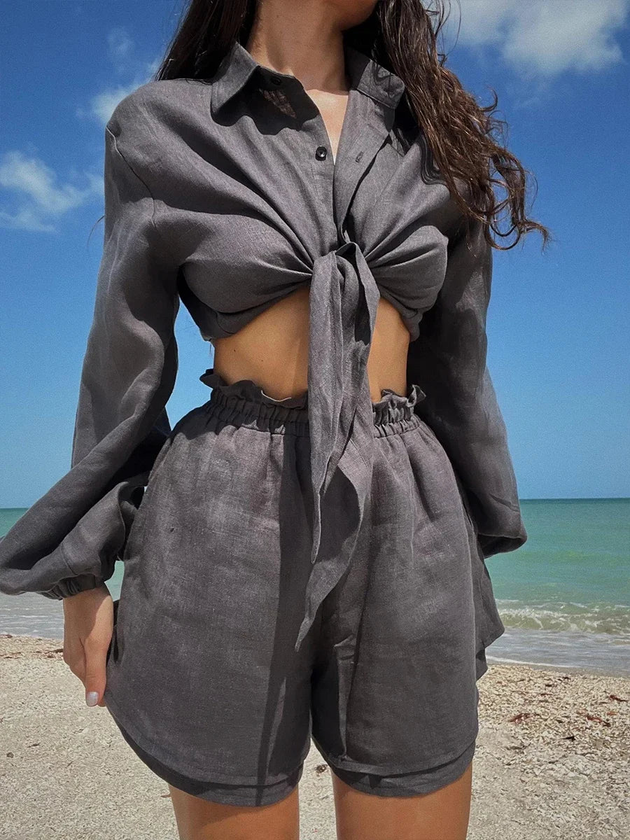 Bronladies Loose Casual Shorts Two Piece Set Womem s Fashionable Lace Up Long