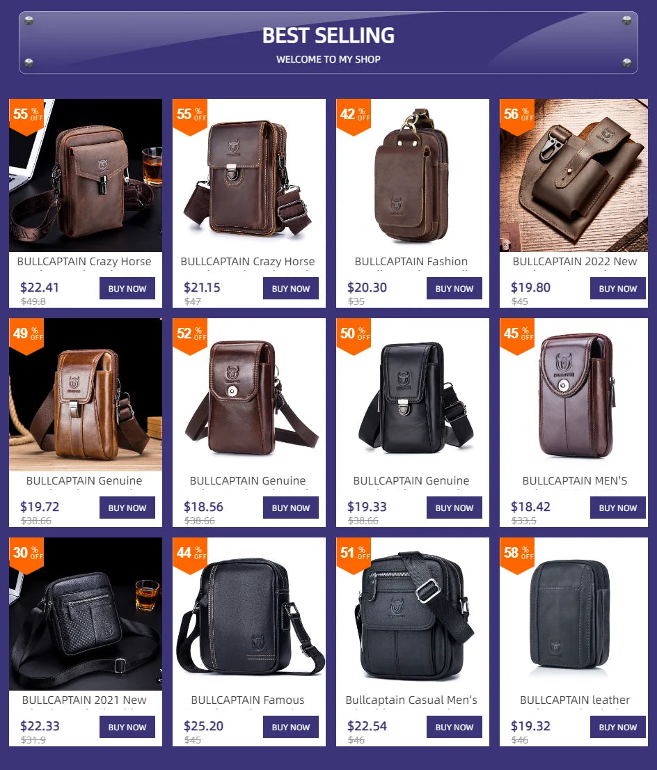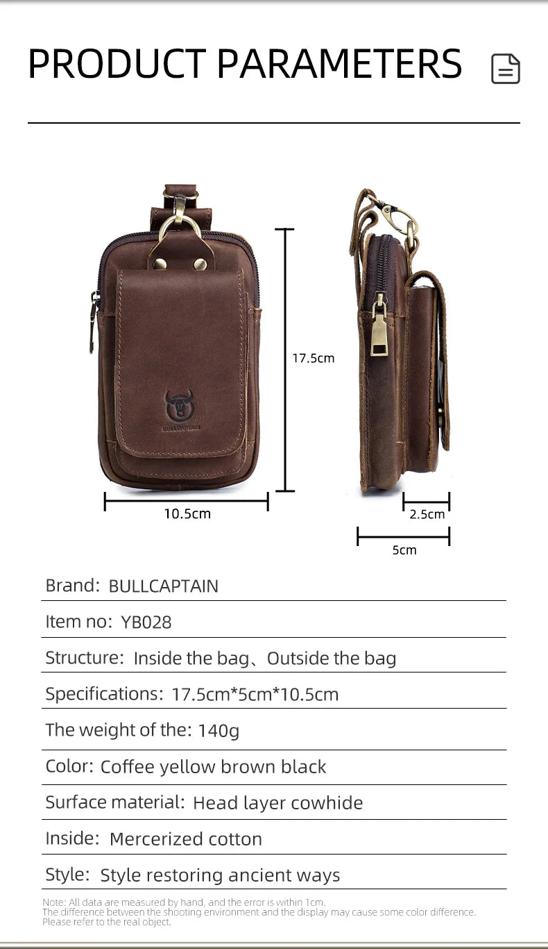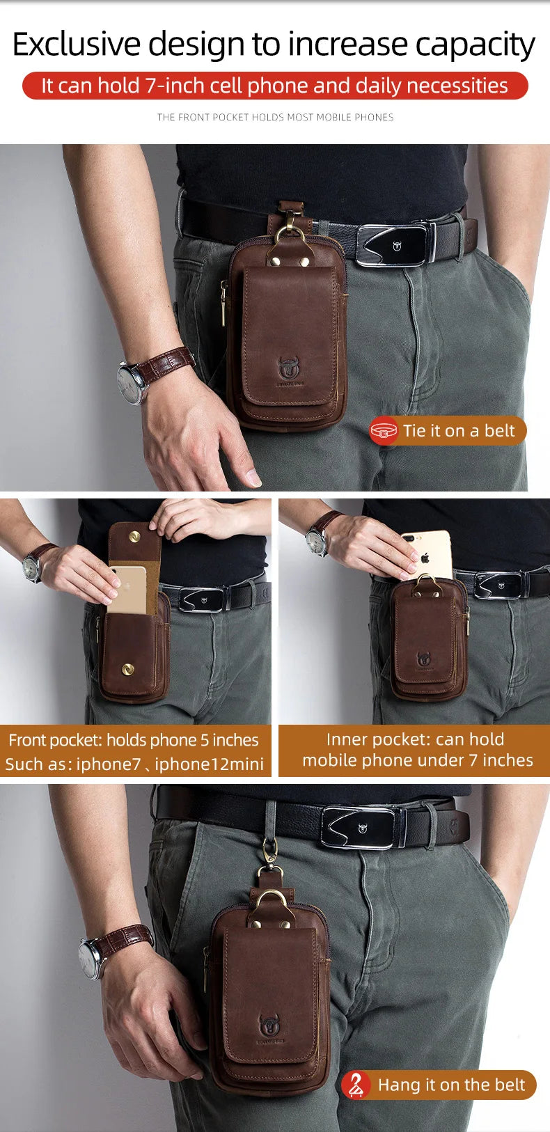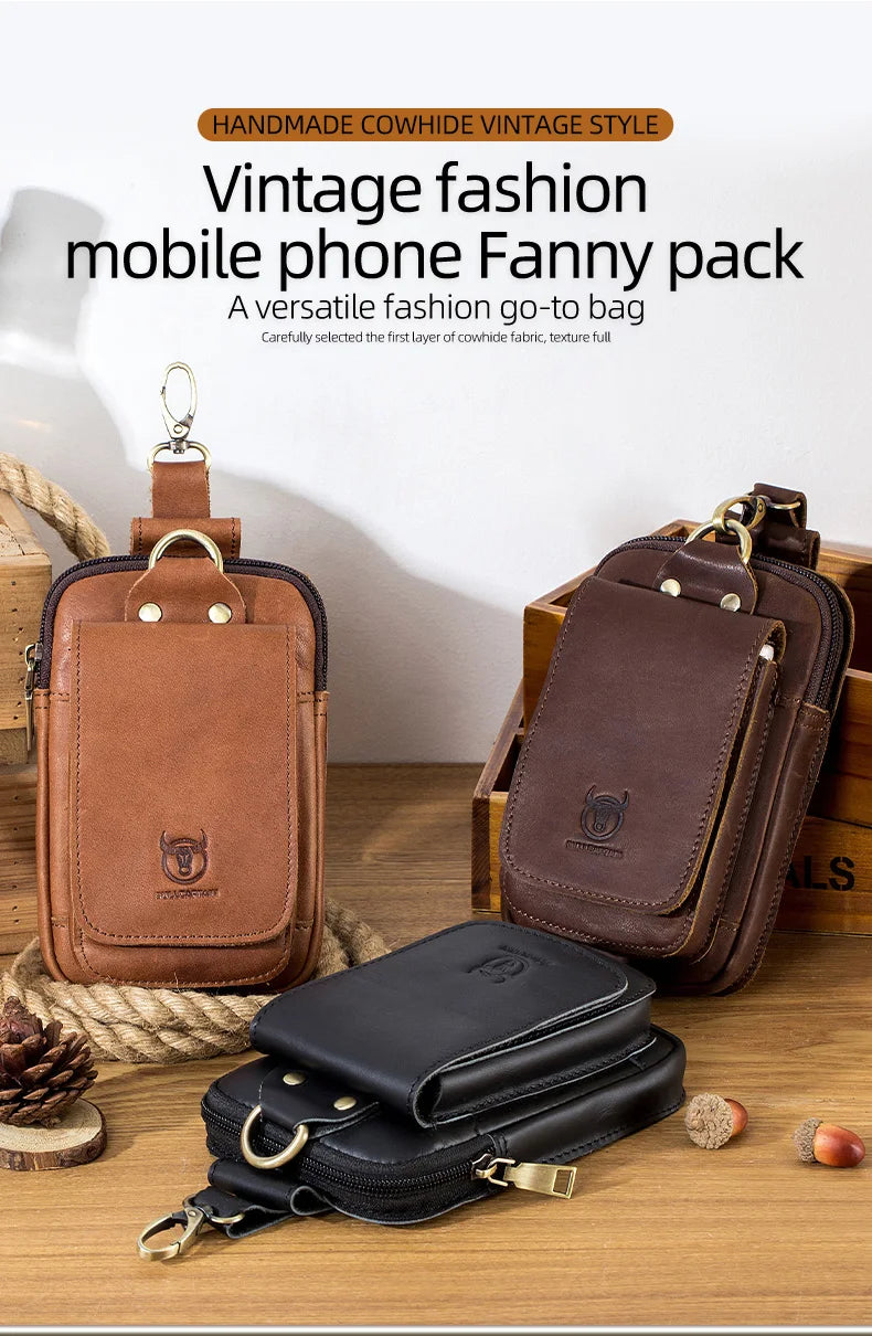 Bullcaptain Fashion Quality Leather Small Summer Pouch Hook Design Waist Pack
