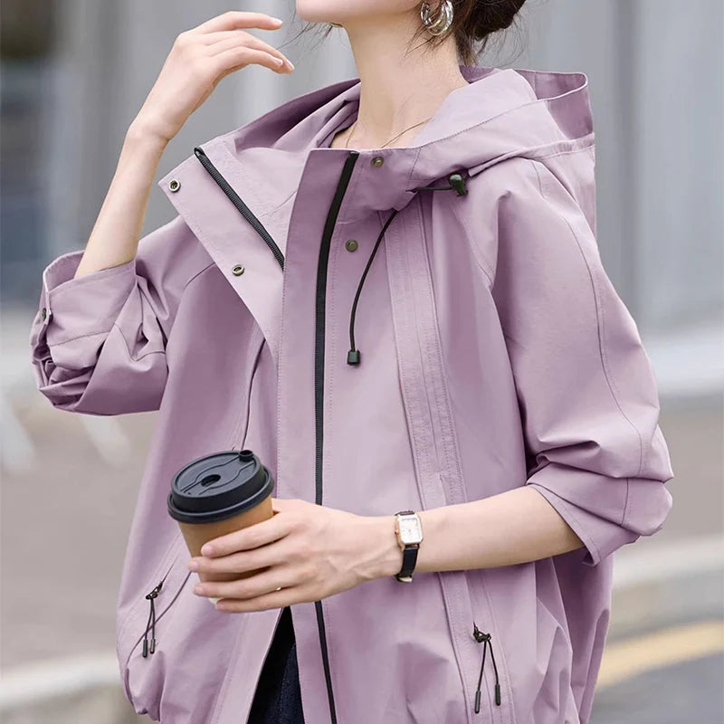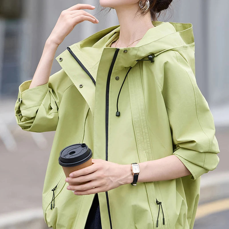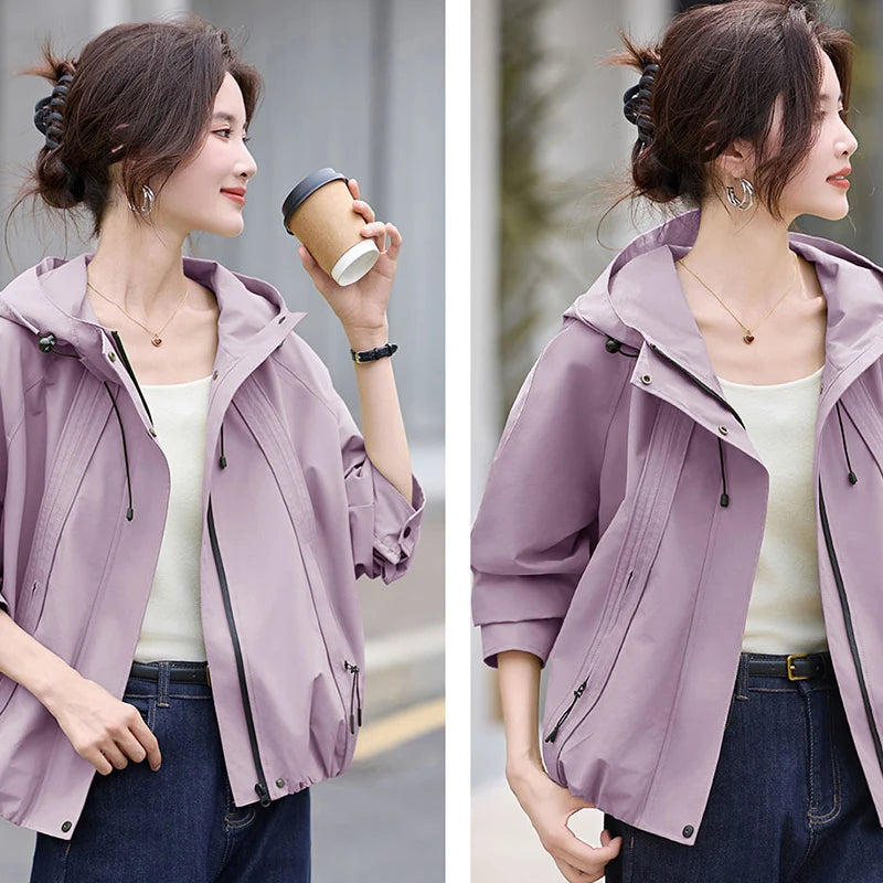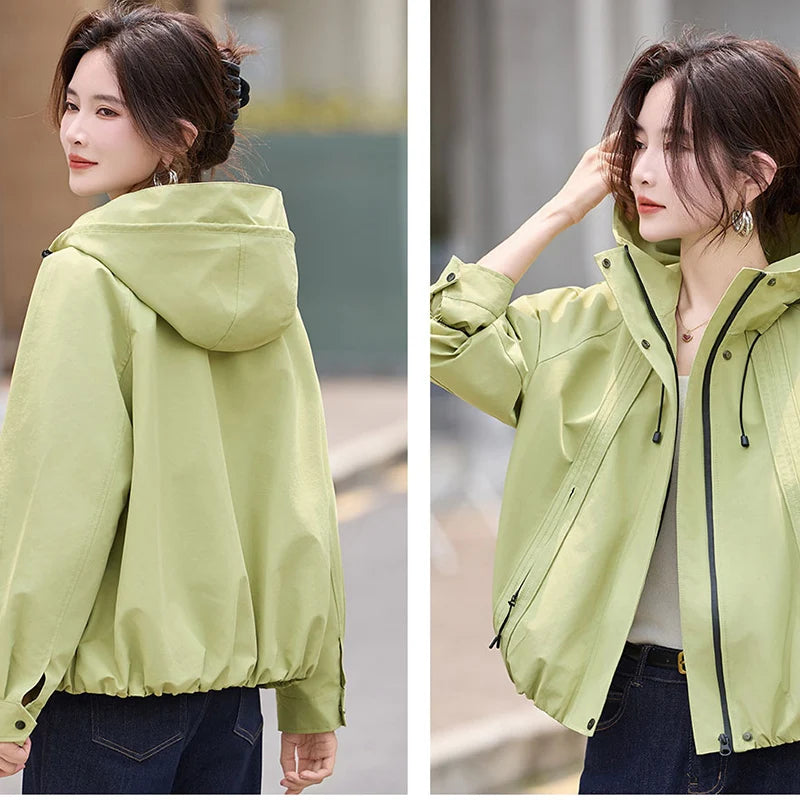 Casual Hooded Women s Windbreaker Jacket Zipper Up Short Jackets for Woman