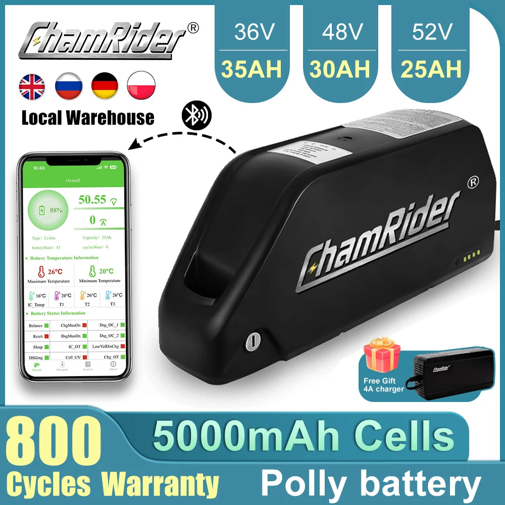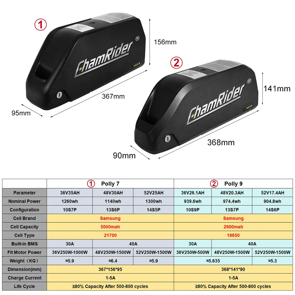 Chamrider Polly 48V 30ah Ebike Battery Downtube 52V Electric Battery BMS 21700