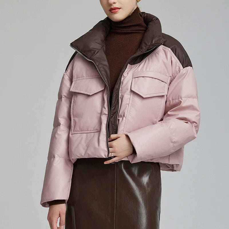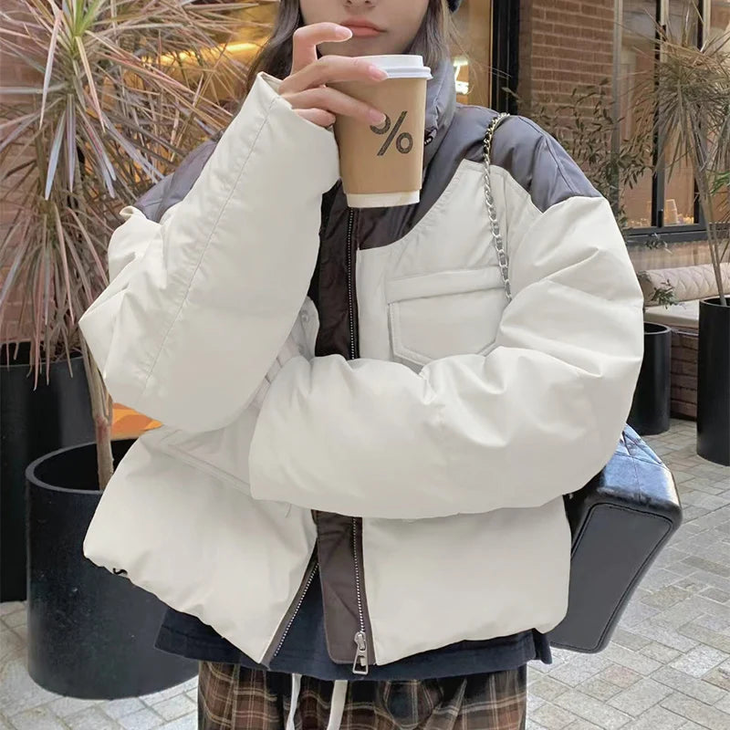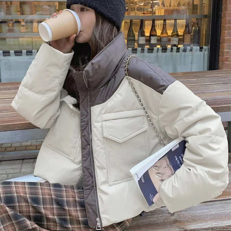 Chic Mix Color Parkas for Women Winter Stand Collar Warm Cotton Padded Jackets