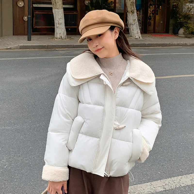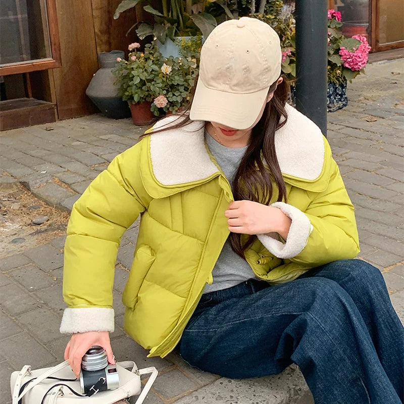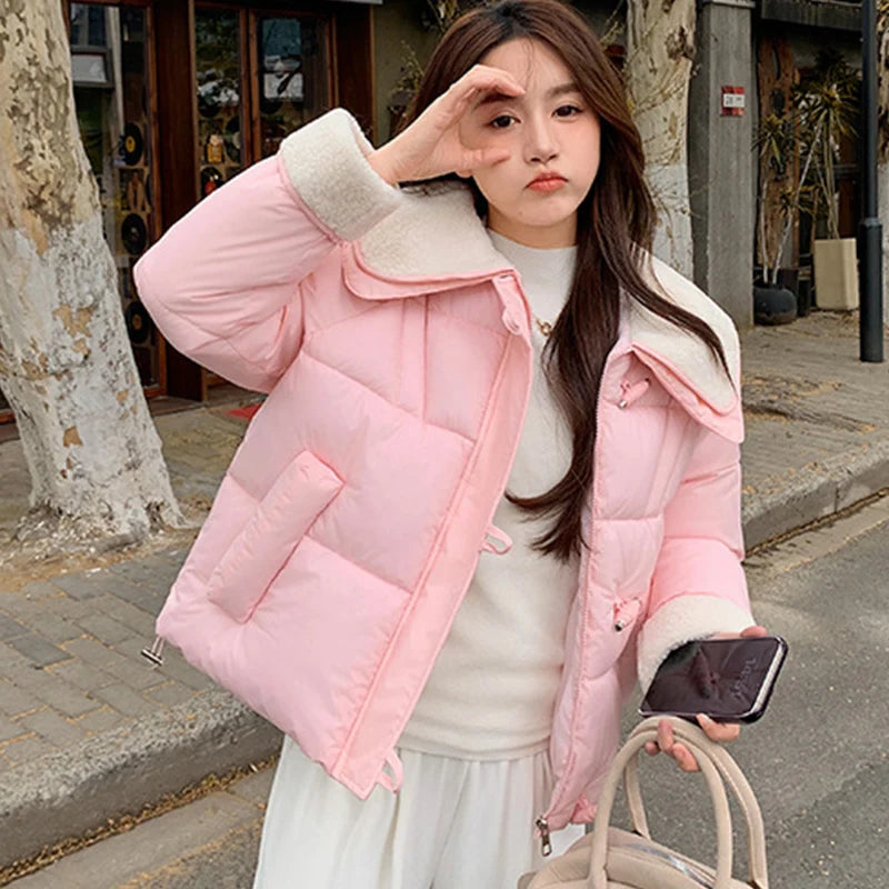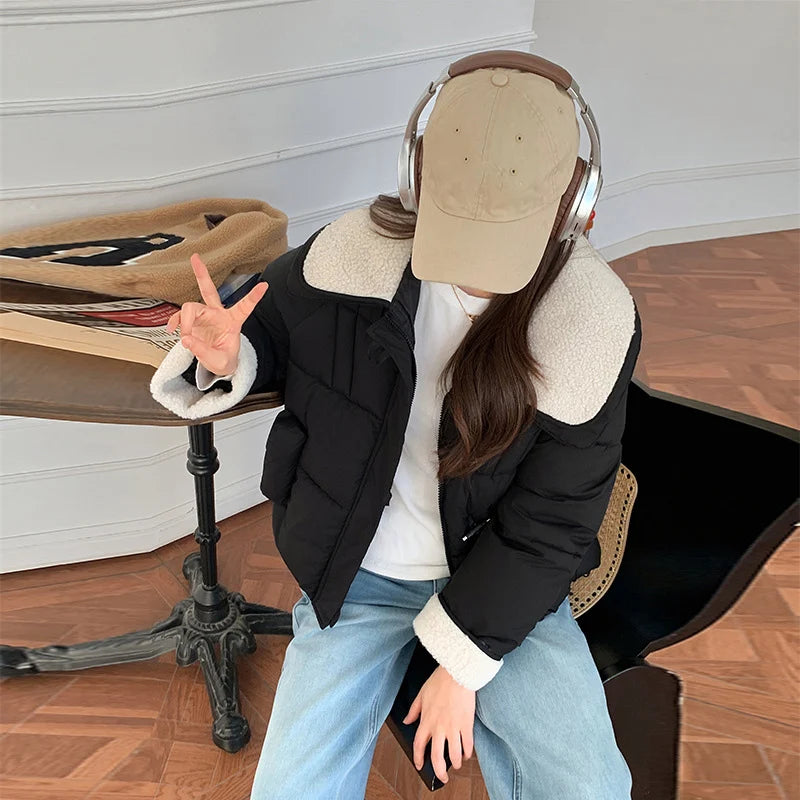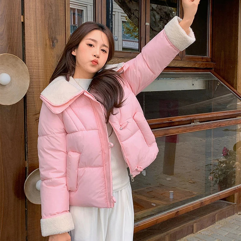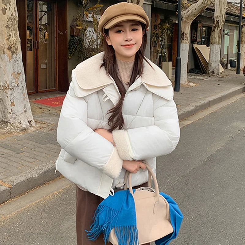 Chic Turn Down Collar Parkas for Women Winter Zipper Up Short Parka Jacket Woman