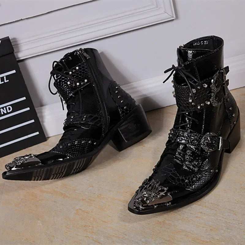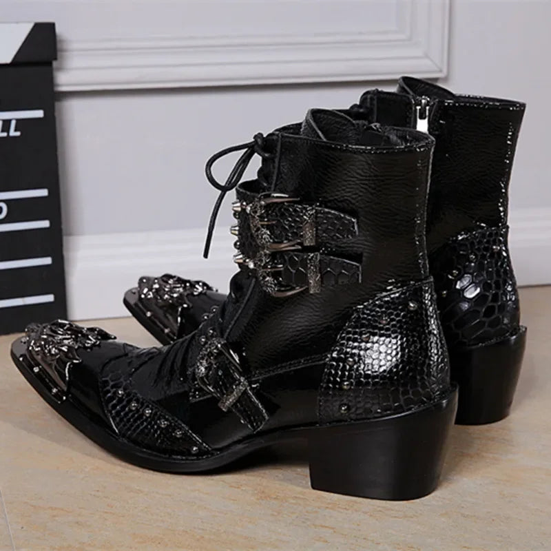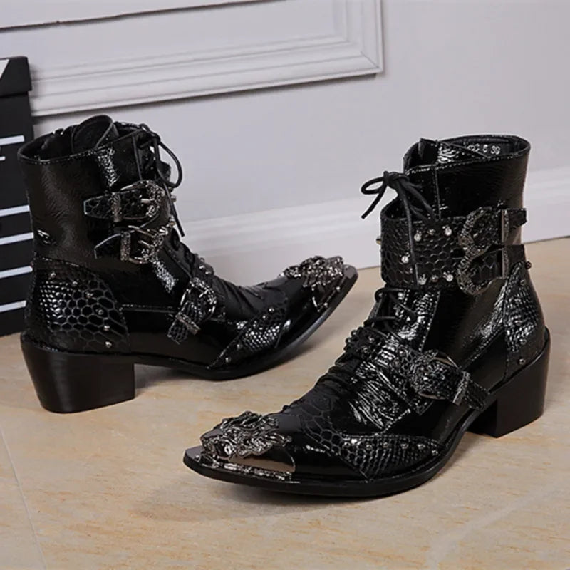 Leather Men Boots fashion Lace Up outdoor Boots breathable Motorcycle Ankle B...