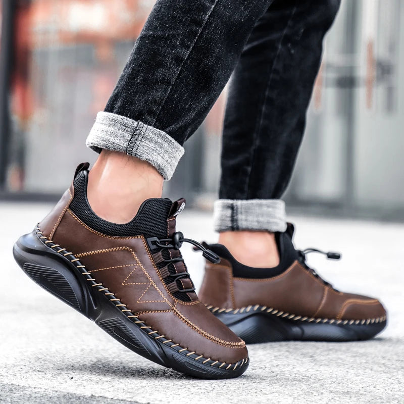 leather casual shoes fashion British Style Comfy men s breathable flat shoes ...