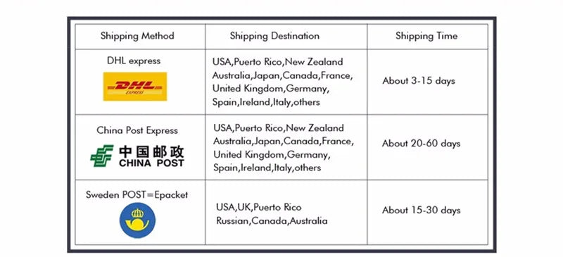 ⏳ Delivery time is calculated from the shipping date.