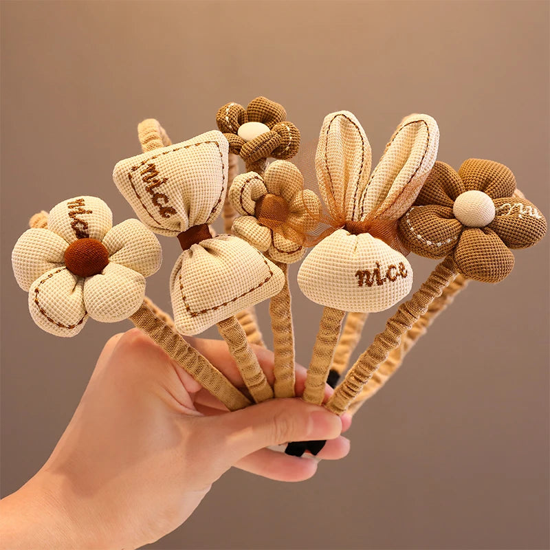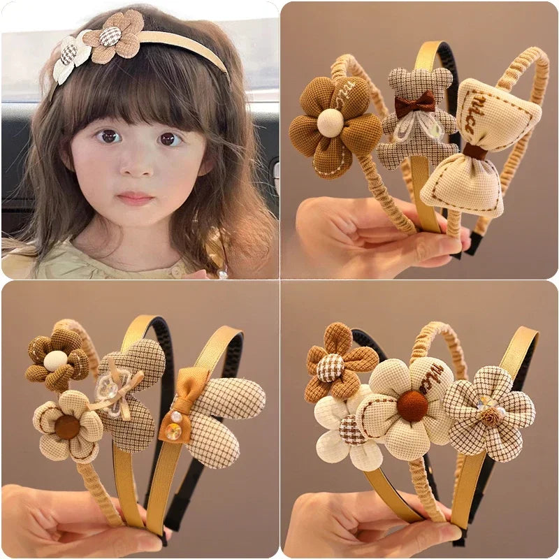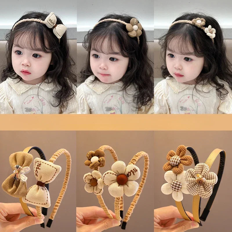 Children Lovely Coffee Color Cartoon Heart Flower Bow Ornament Headbands Baby