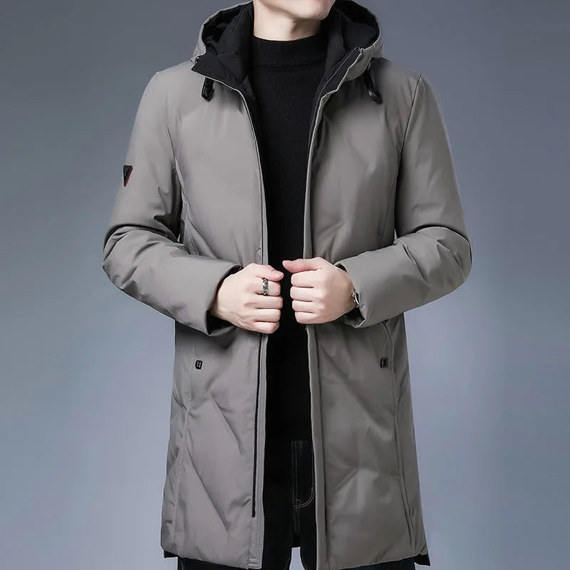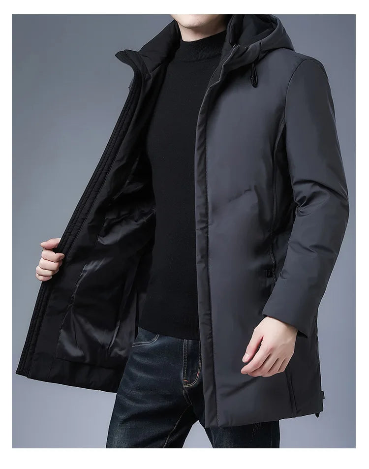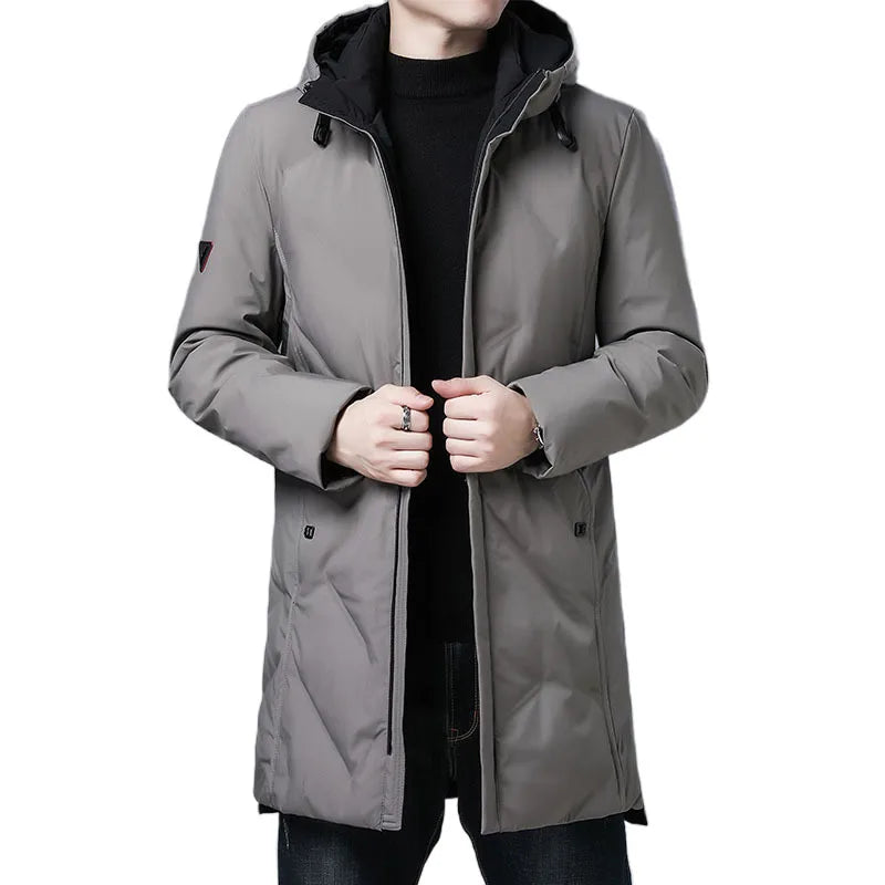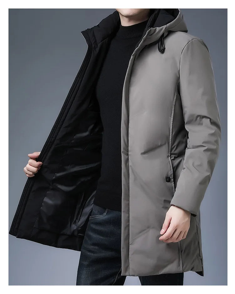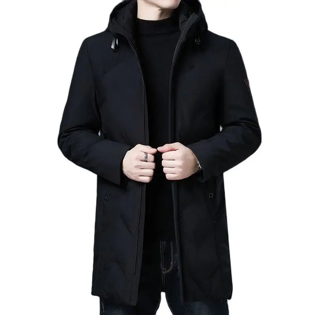 New Winter Down Jacket Men White Duck Down Hooded Jackets Coats Men Long Warm Down Jackets Fashion Casual Men Clothing