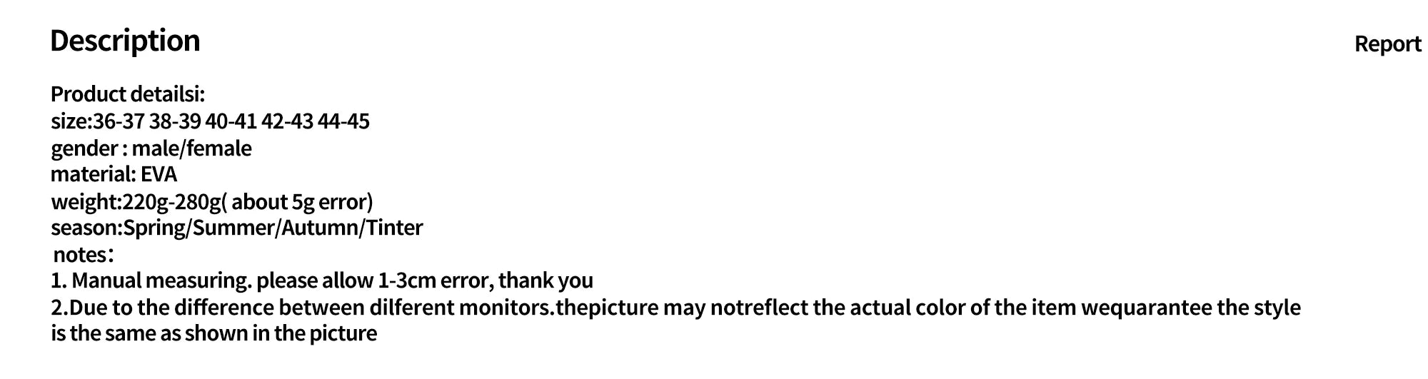 Insole Material: EVA