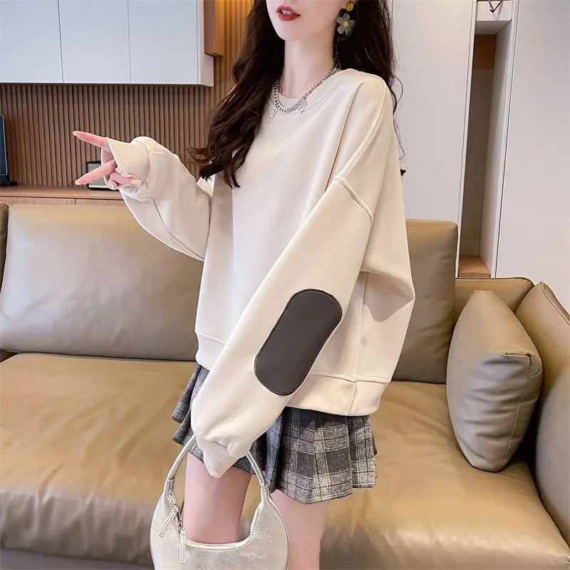 Western Design Round Neck Pullover Thin Sweatshirt for Women Korean Style Loo...