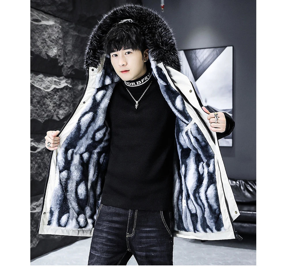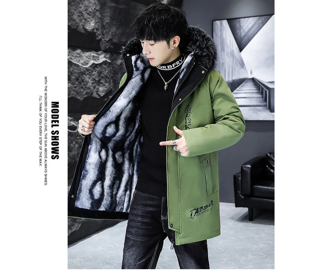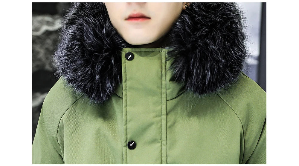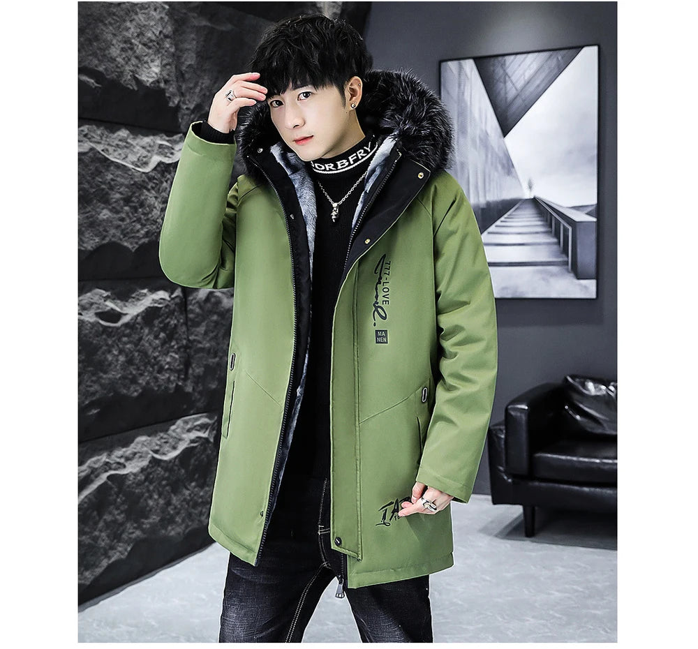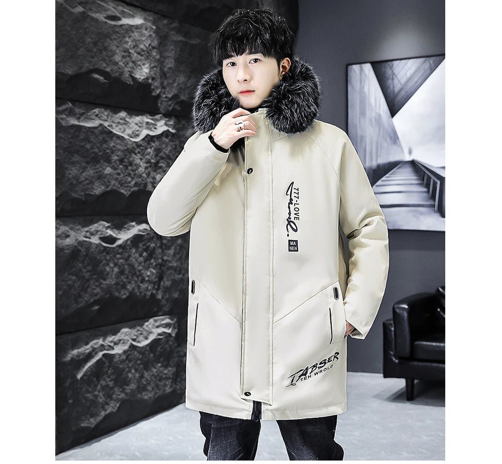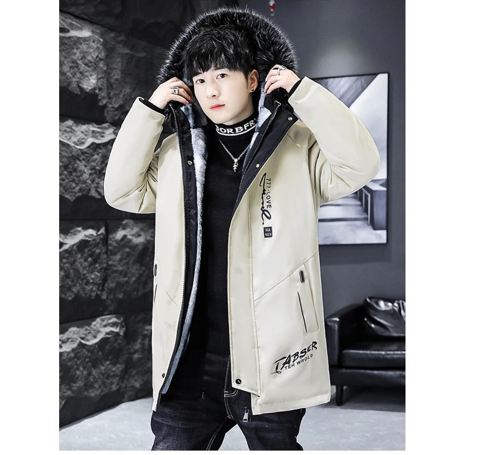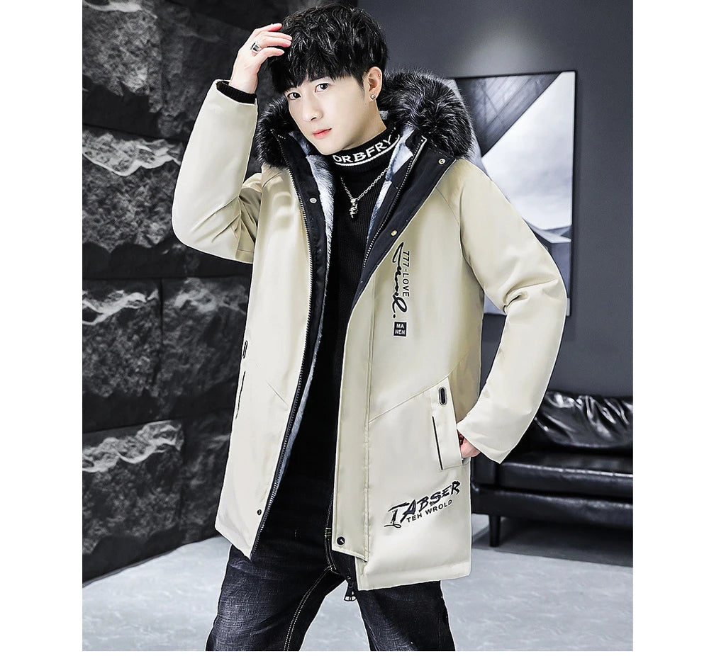 Winter Men's Long Down Jacket Fashion Male Thermal Parkas Coats Casual Men Classic Fur Collar Warm Padded...