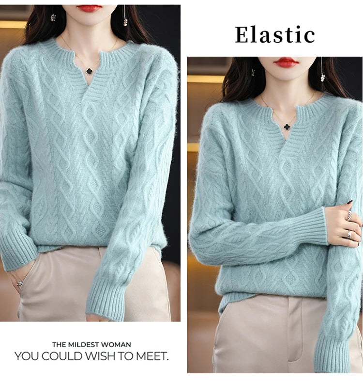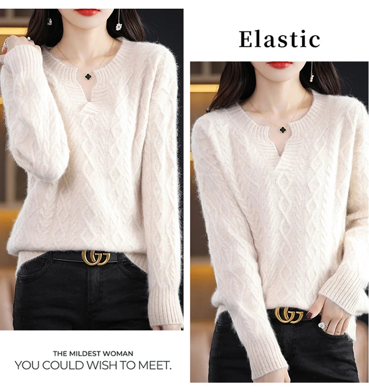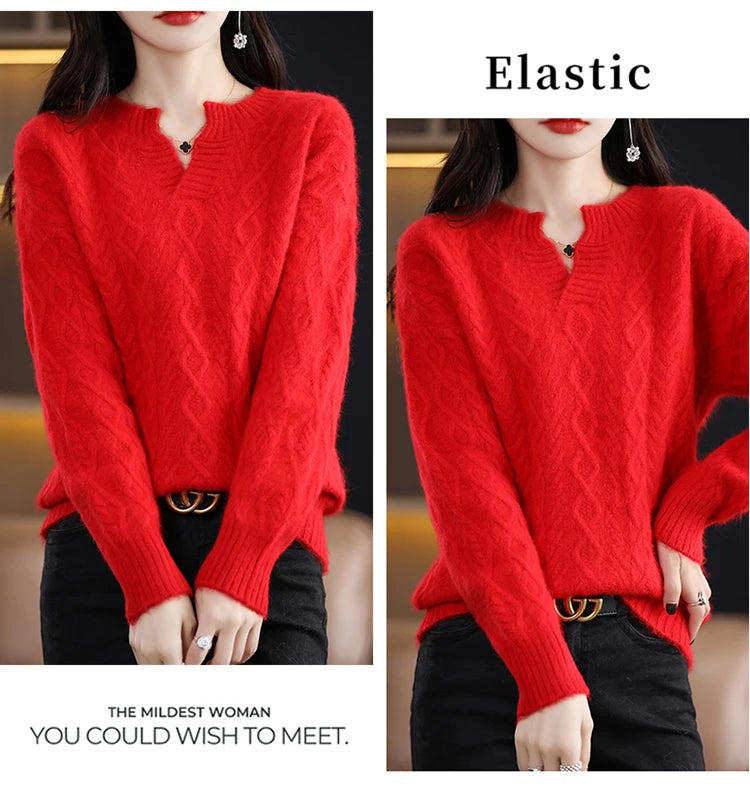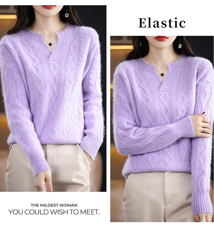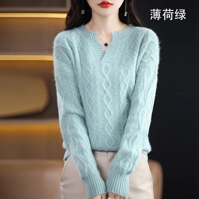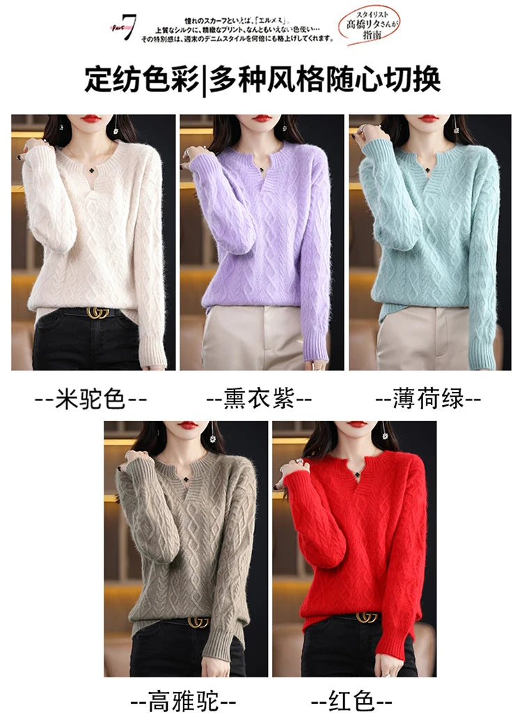 100% чистый норковый кашемировый свитер женский с V-образным вырезом утолщенный трикотажный пуловер модна...