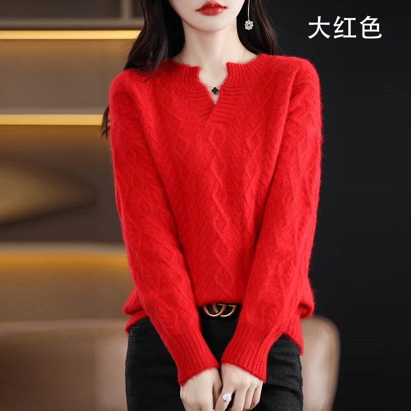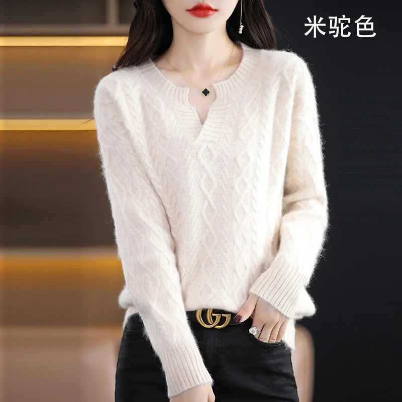 100% чистый норковый кашемировый свитер женский с V-образным вырезом утолщенный трикотажный пуловер модная жаккардовая куртка большого размера осень-зима новая одежда