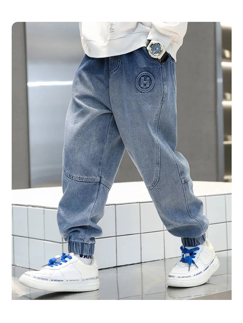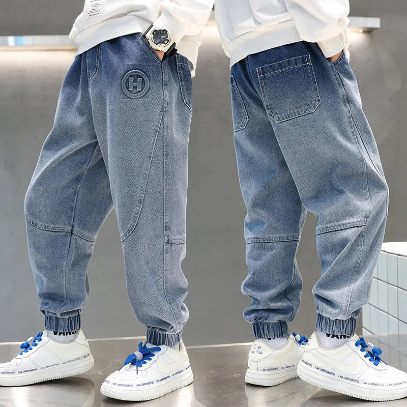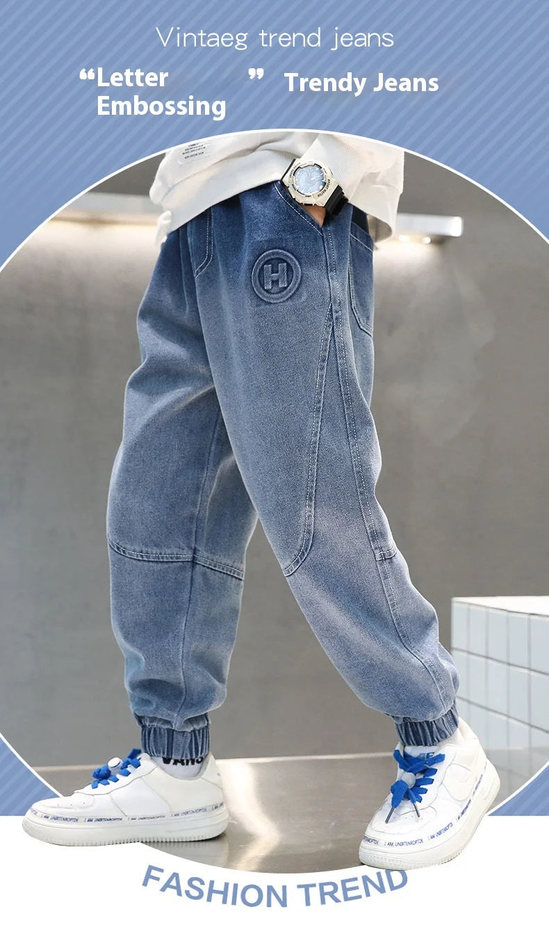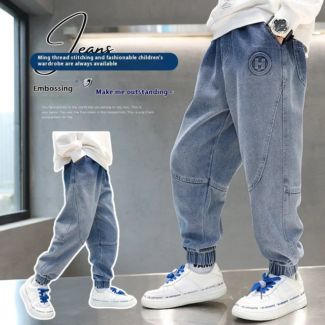 Джинсы Straight-Shield для мальчиков с большими карманами и буквенным принтом, новинка 2025 года, джинсы ...