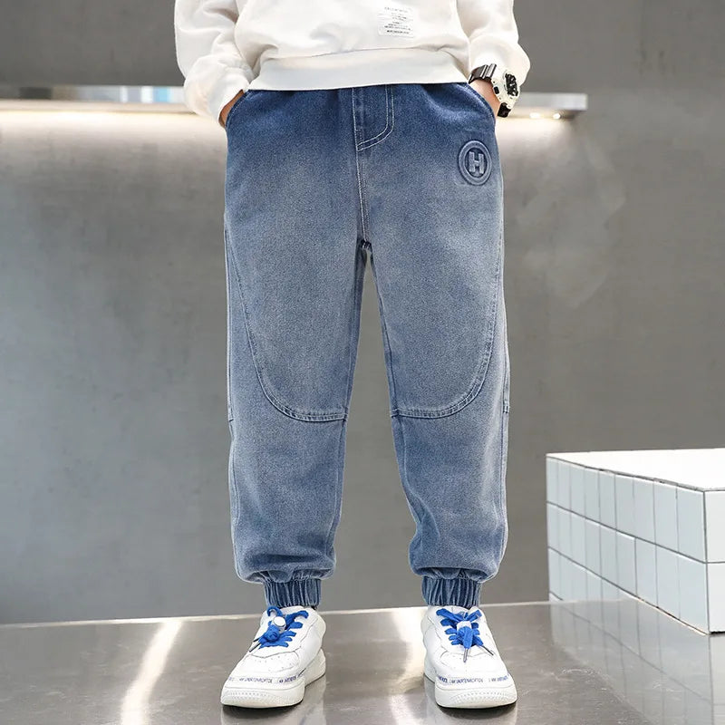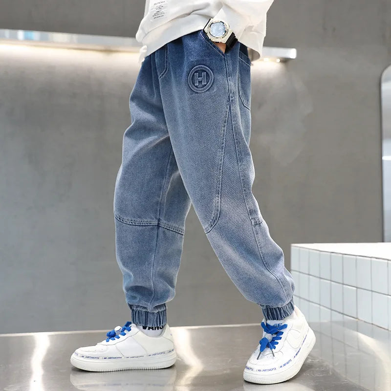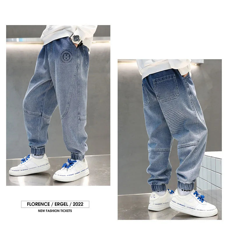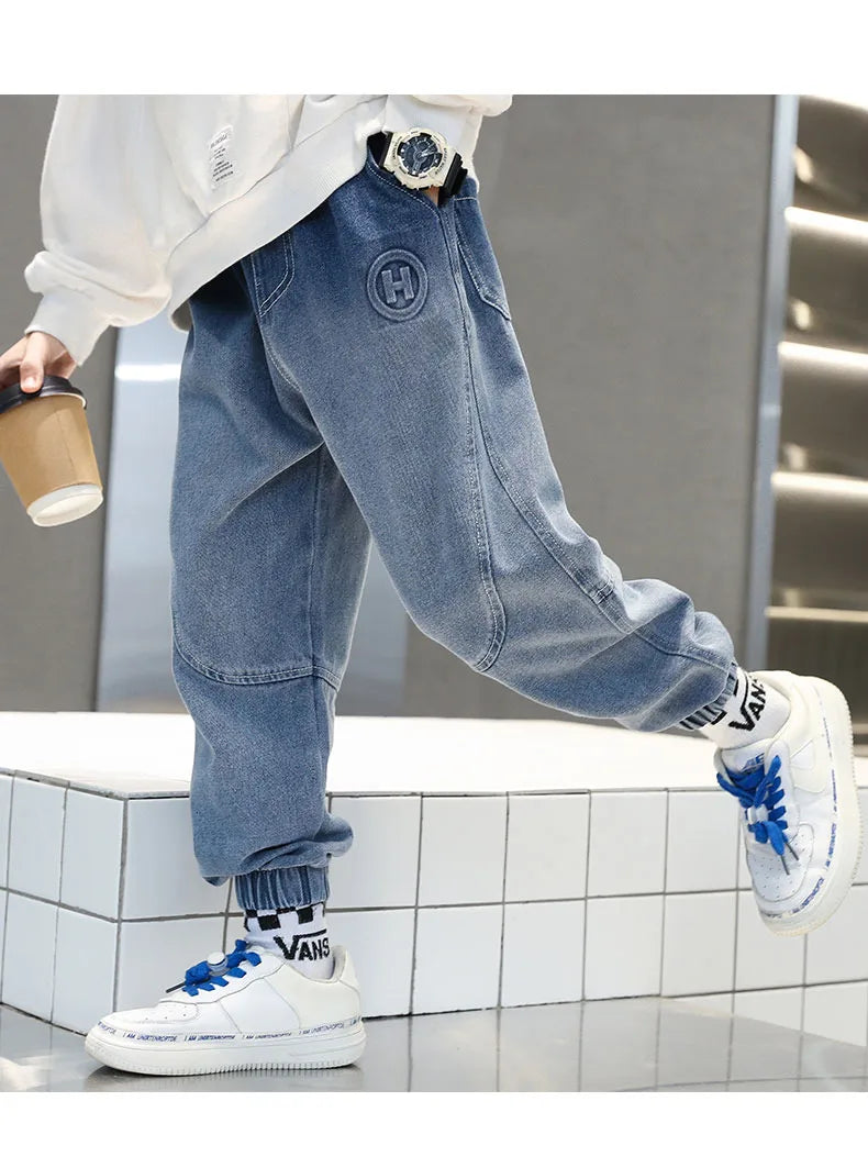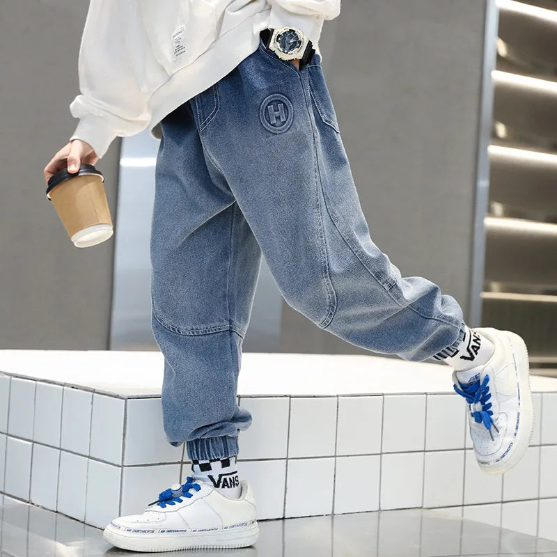 Джинсы Straight-Shield для мальчиков с большими карманами и буквенным принтом, новинка 2025 года, джинсы ...